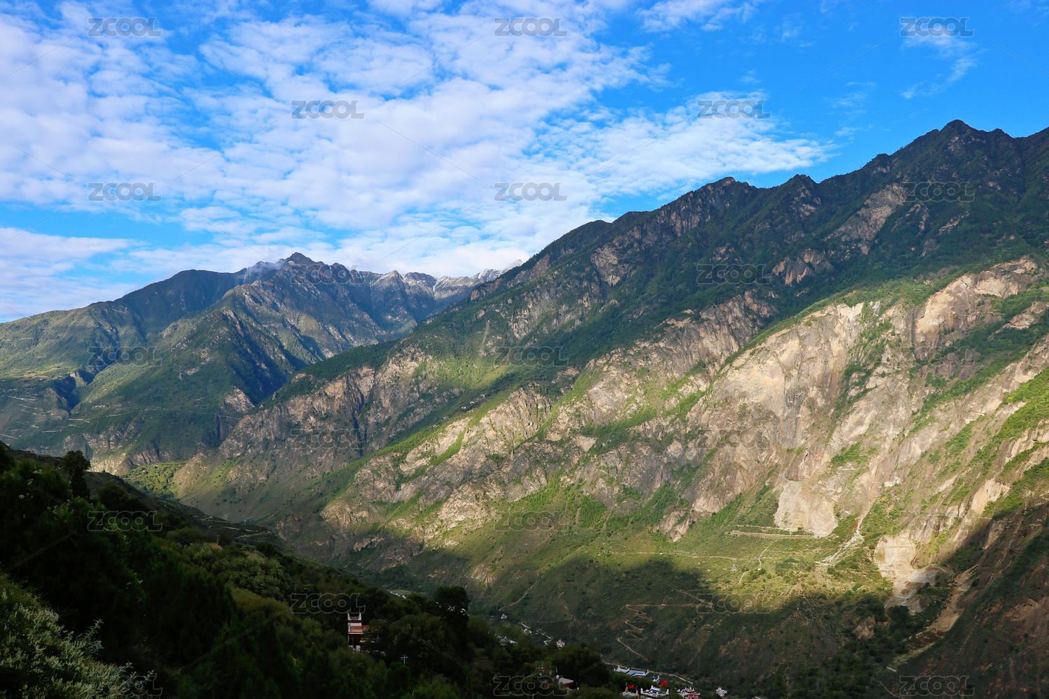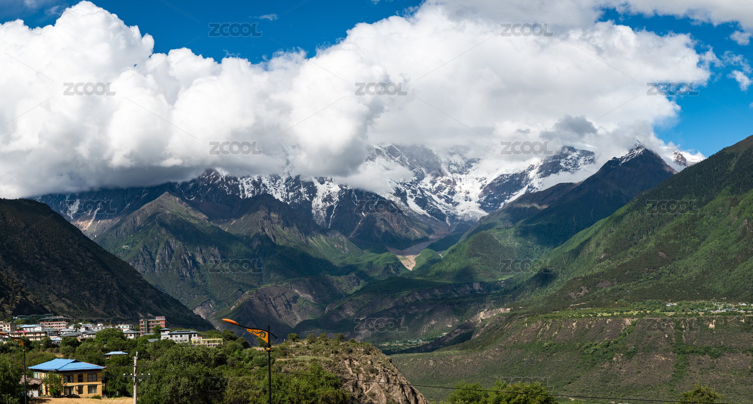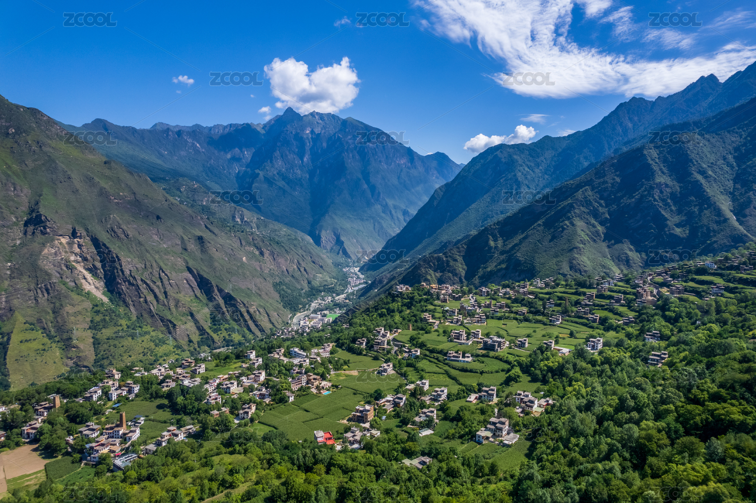 中国西藏林芝高原山脉和草原牧场和村庄美景