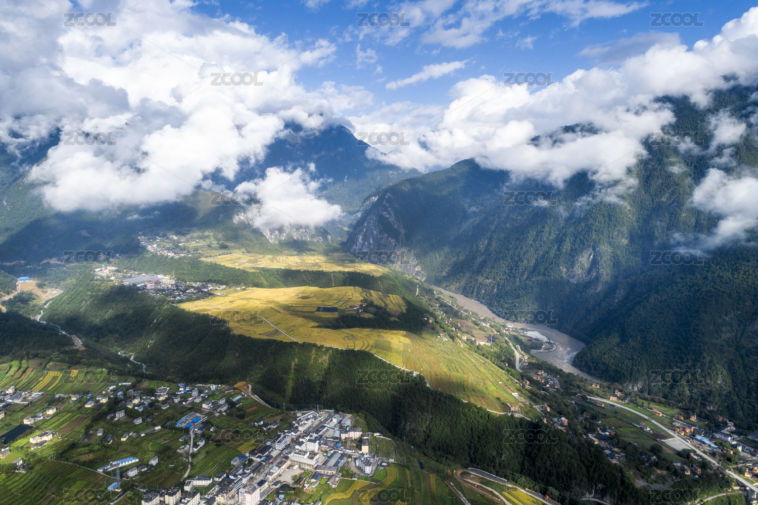 中国四川省甘孜州丹巴县中路藏寨航拍