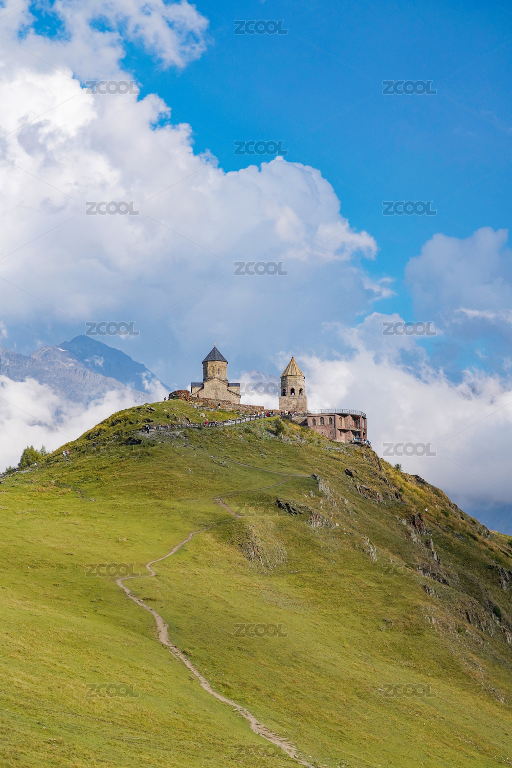格鲁吉亚,外高加索山脉,风景,自然风光,卡兹别克山,高山,圣三一教堂,建筑,户外,历史