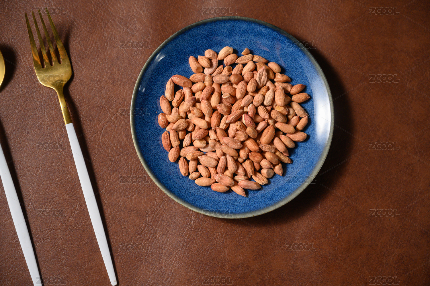 桌面上的盘子里的美味可口的新鲜花生仁