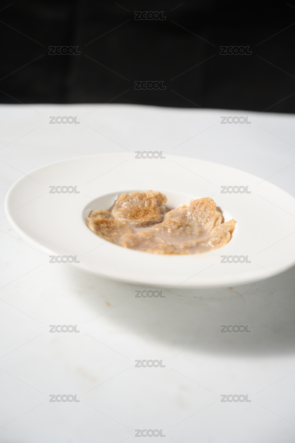 桌面上的碗里的美味可口的清汤鱿鱼圈