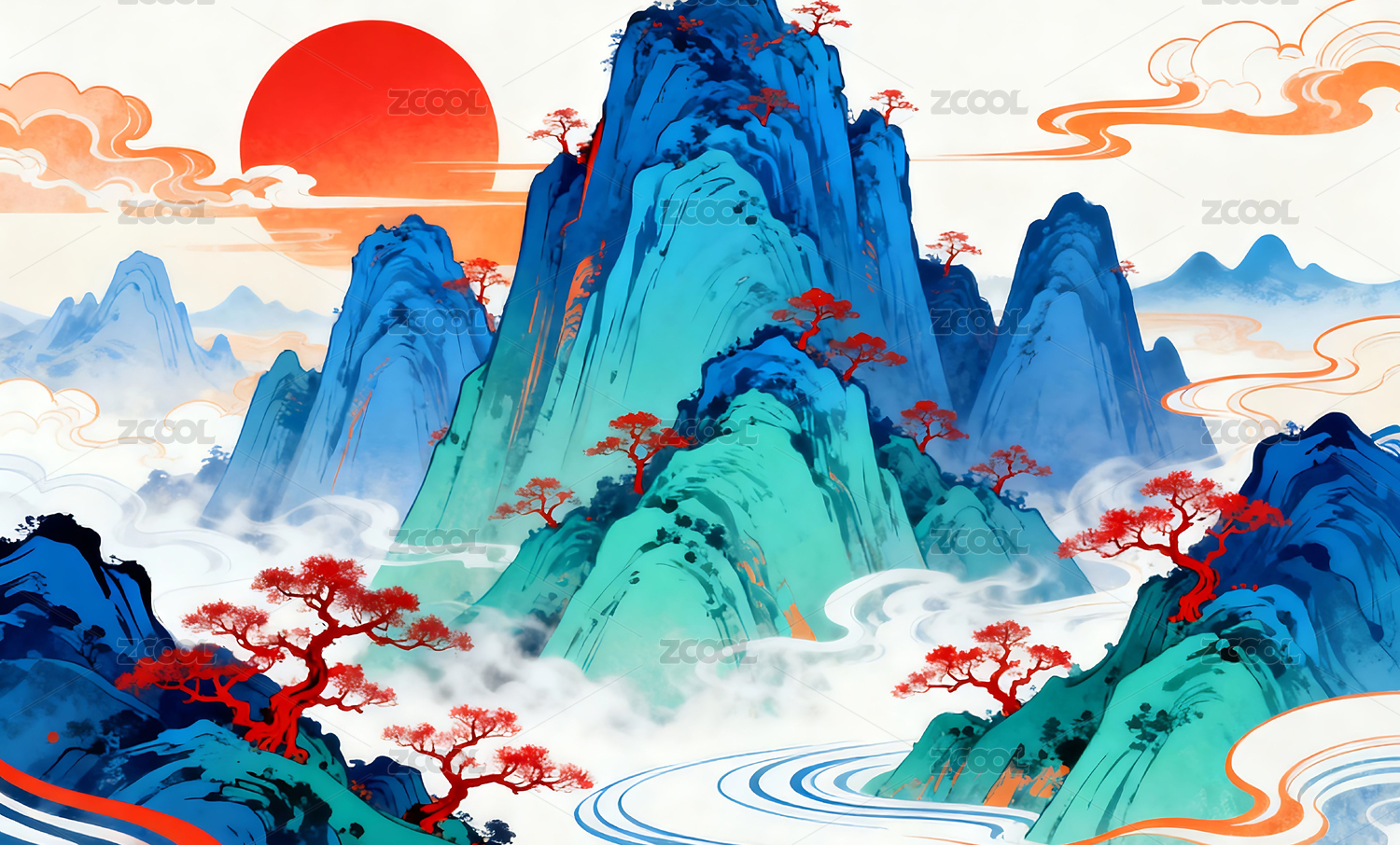 山水国潮风山水风景场景