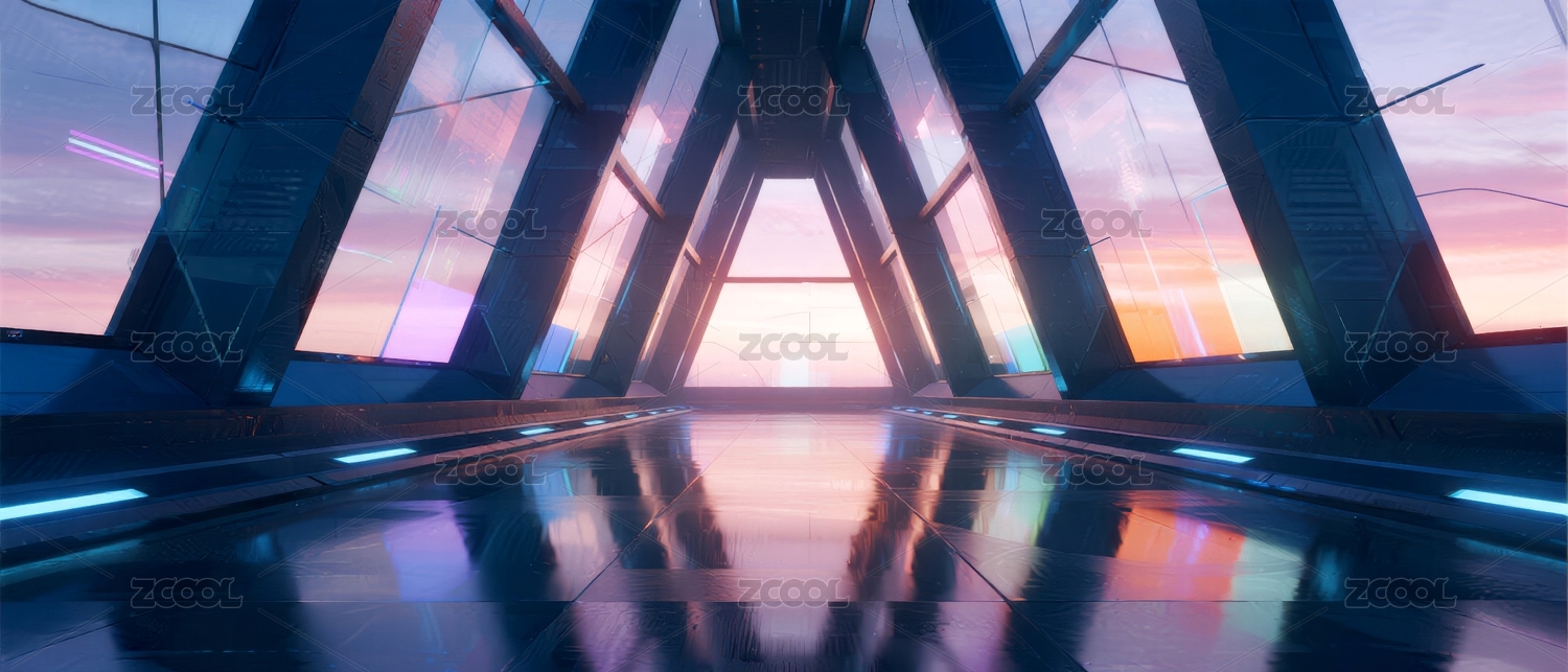 赛博朋克建筑室内空间发光未来科技科幻虚构