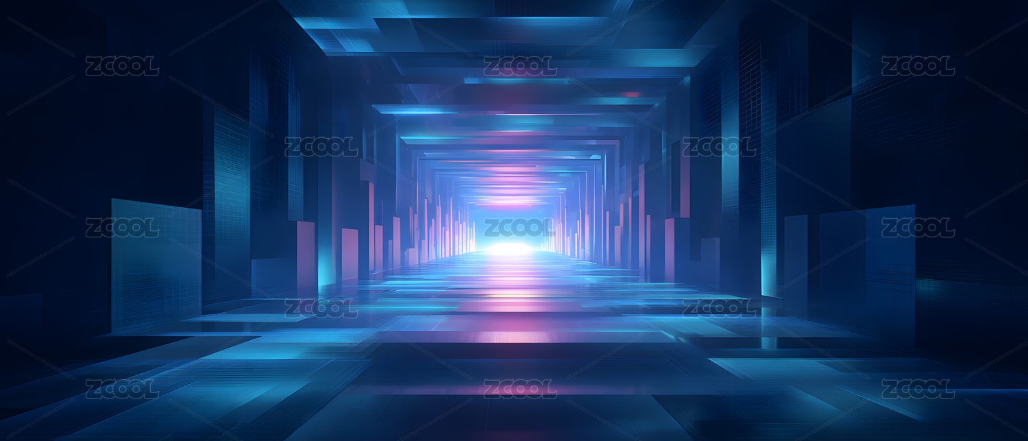 抽象霓虹灯光建筑空间走廊背景时尚朋克摇滚