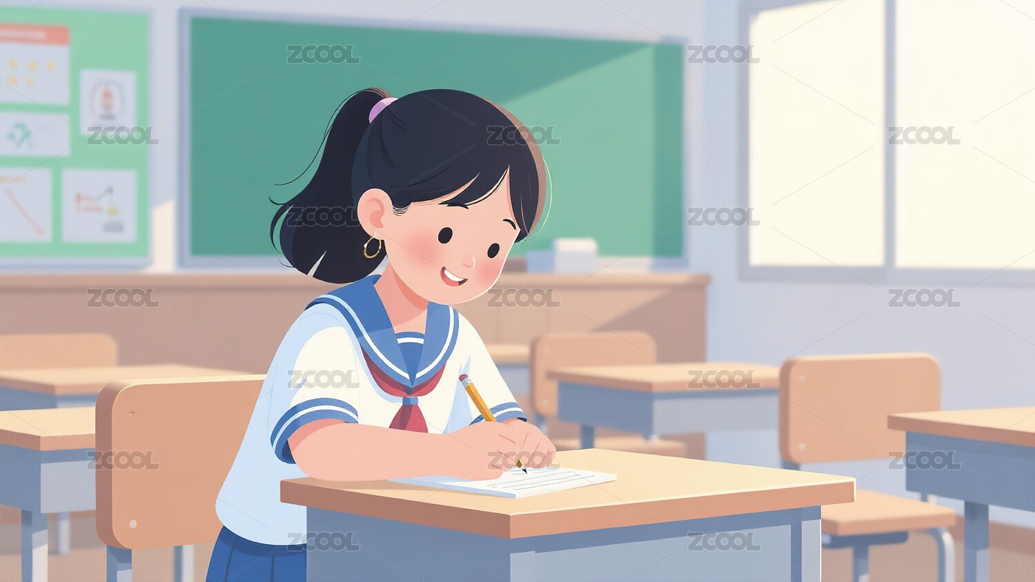 小男孩,教室,专注,学习,铅笔,书桌,学校,教育,学生,书写