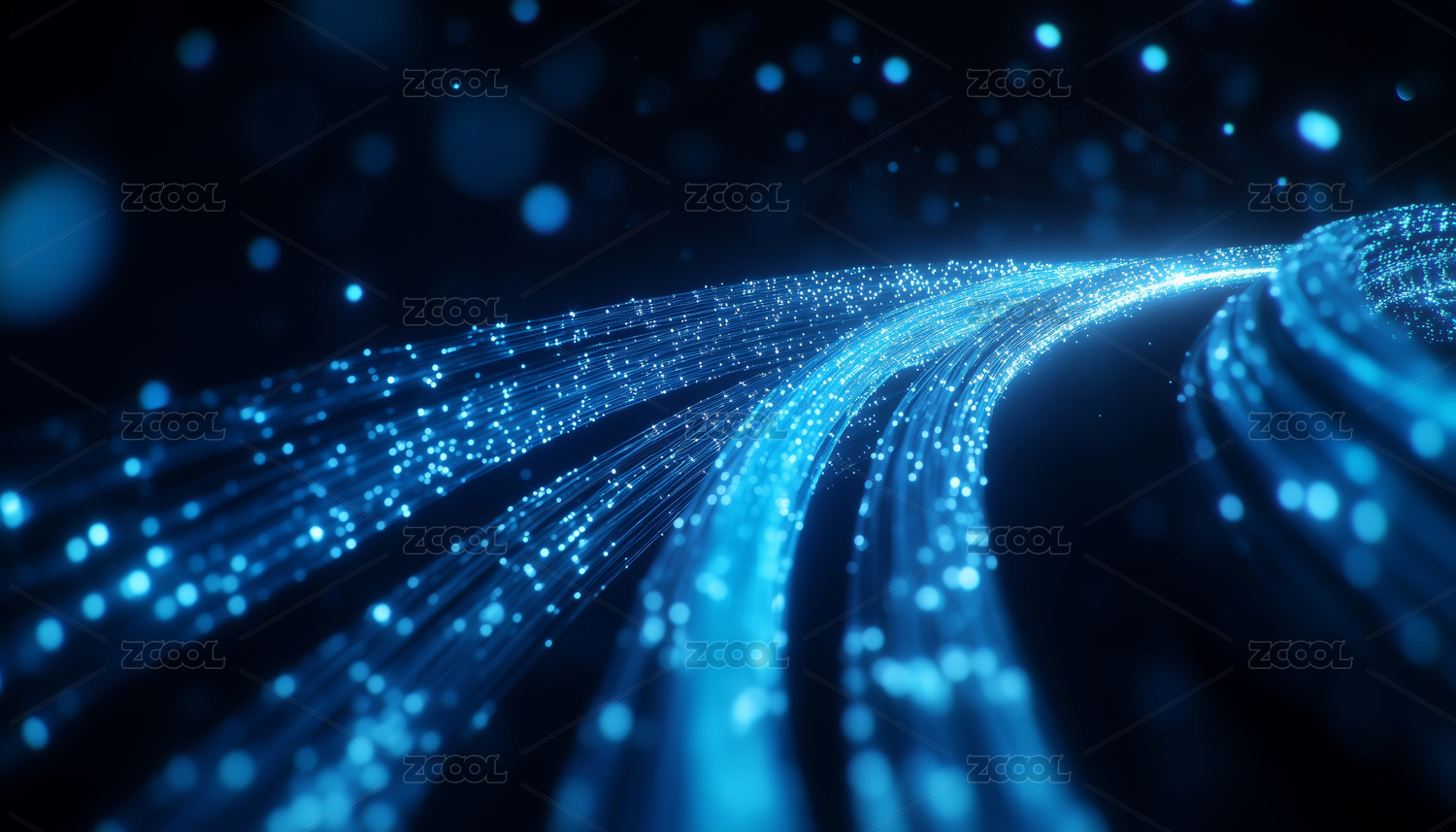 蓝色弧形发光光线粒子科技背景