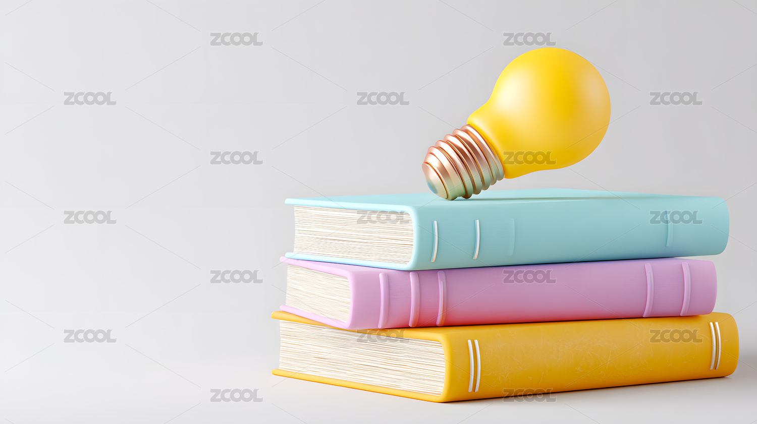 堆叠的彩色书籍上象征智慧的灯泡