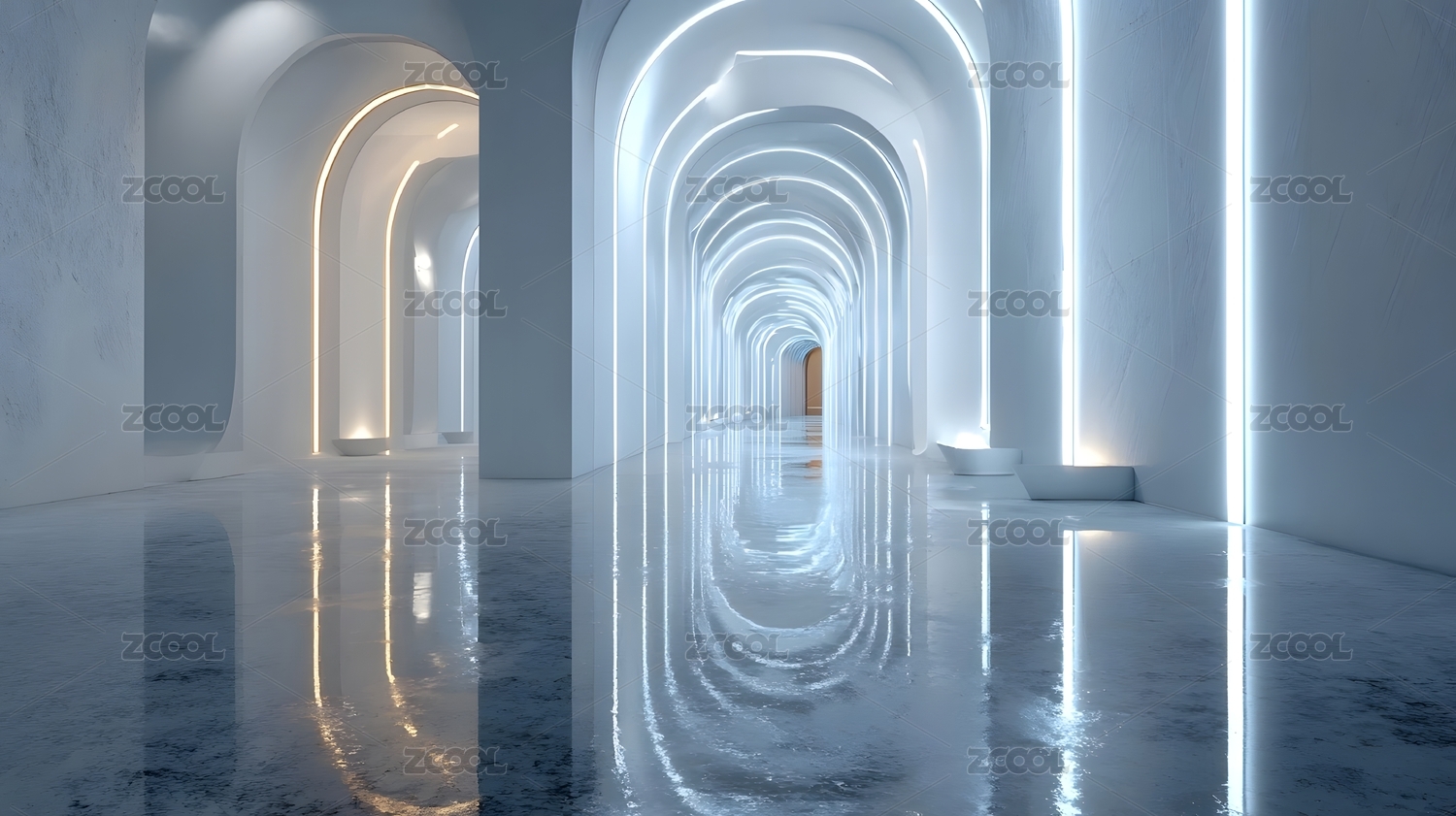 现代,建筑,设计,反射,未来感,结构,蓝色,光影,走廊,科技感