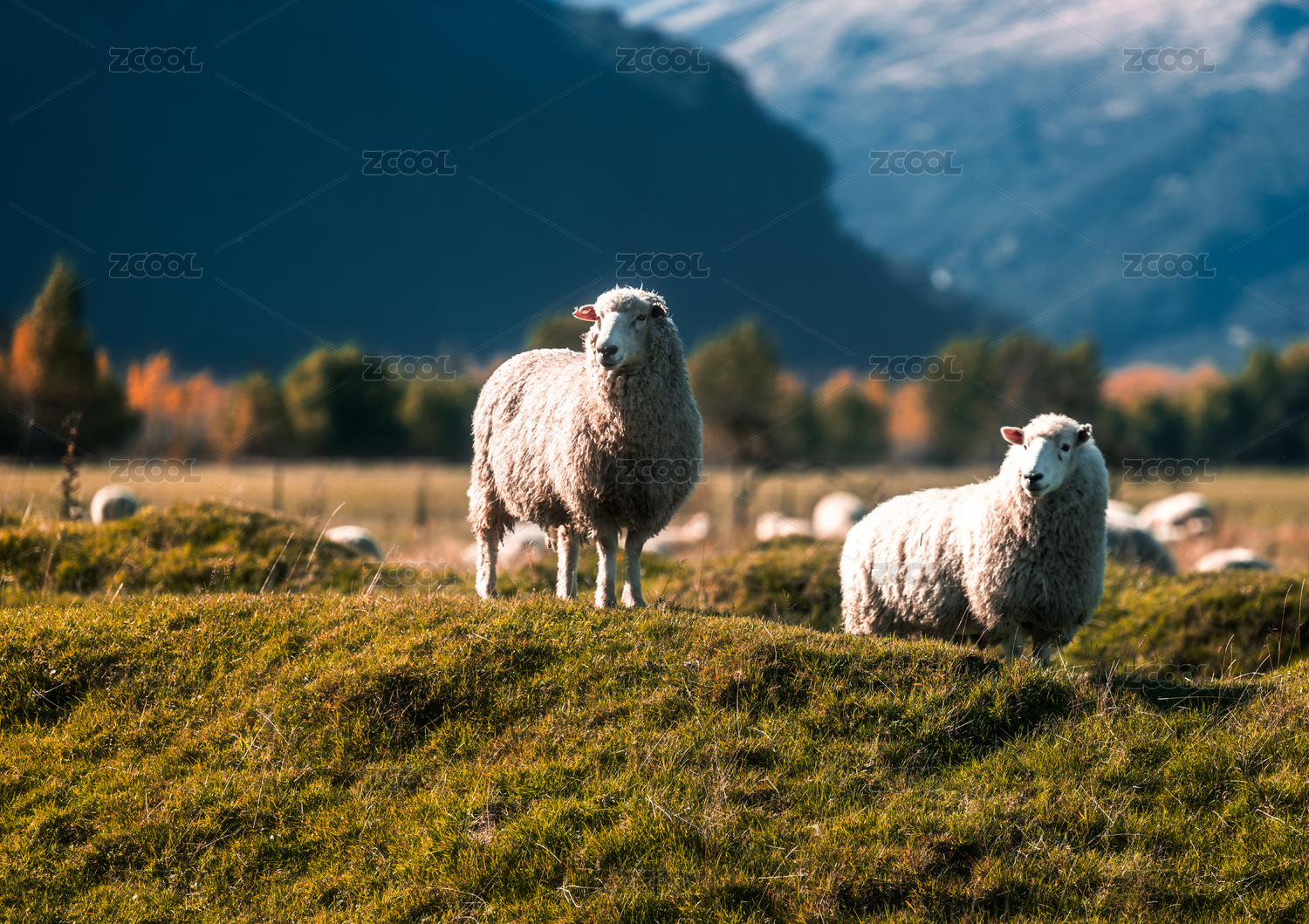 秋季新西兰格莱诺奇天堂镇牧场上的羊群