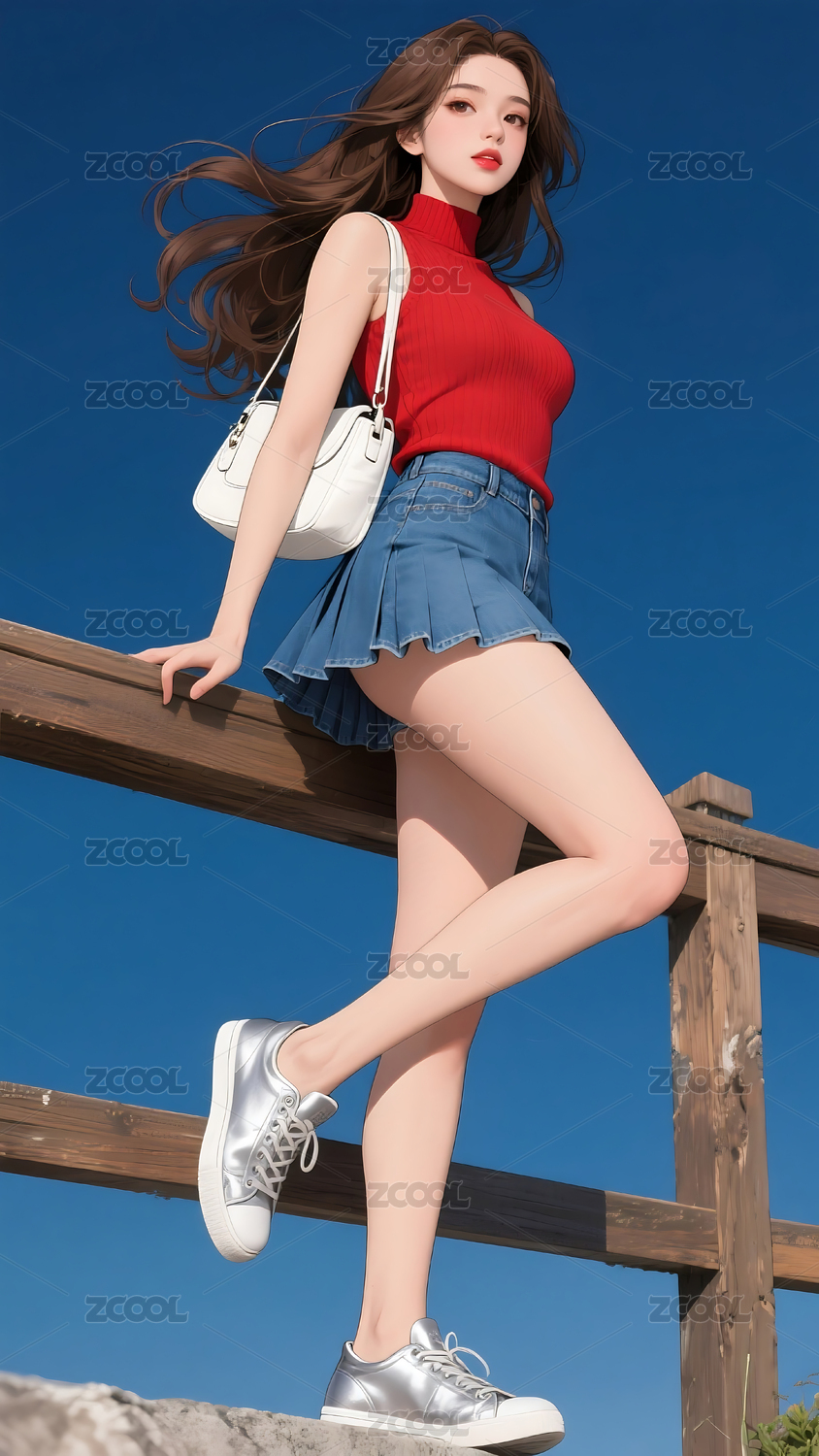 蓝空下的青春少女