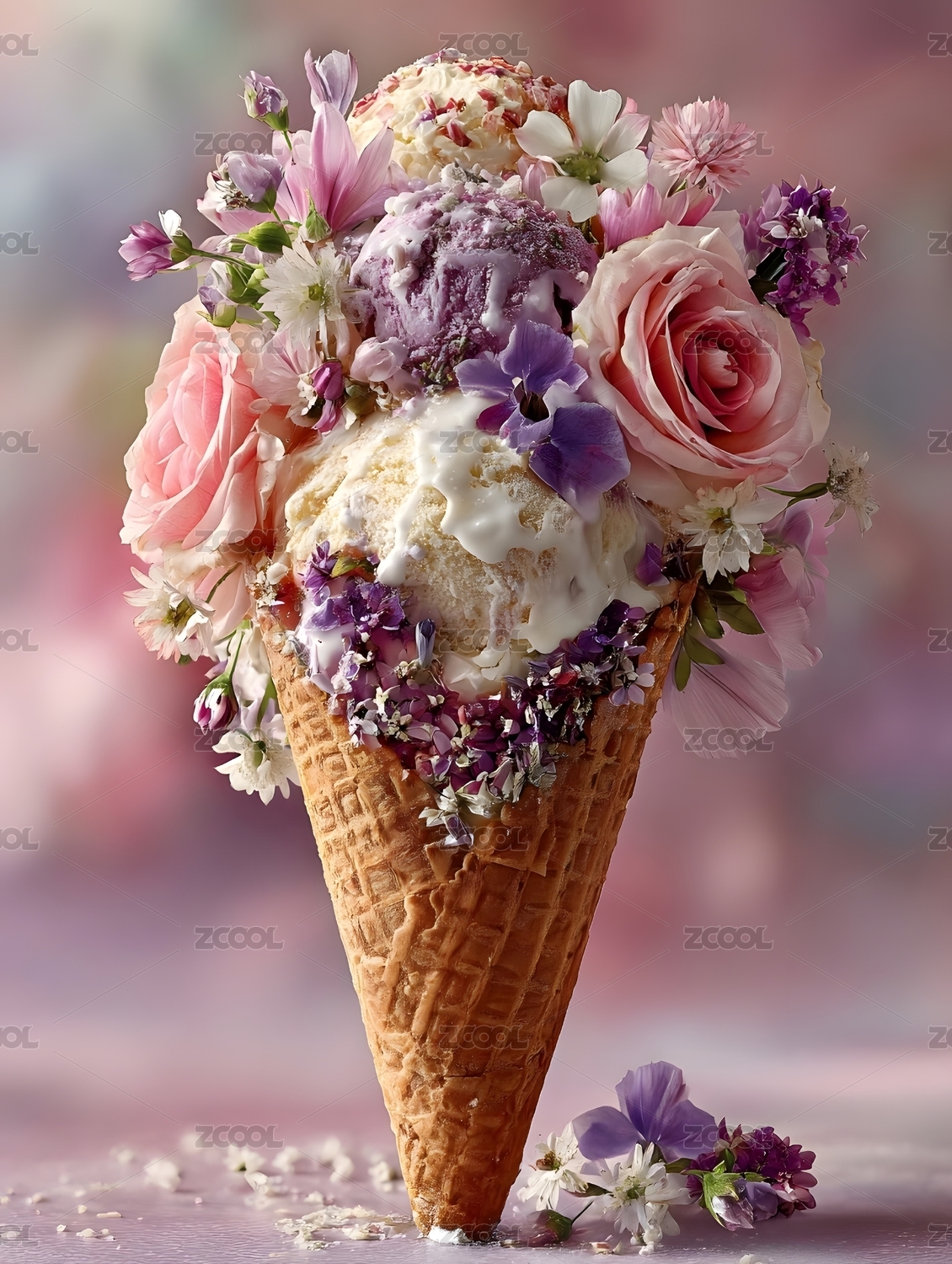 冰淇淋与花的浪漫组合