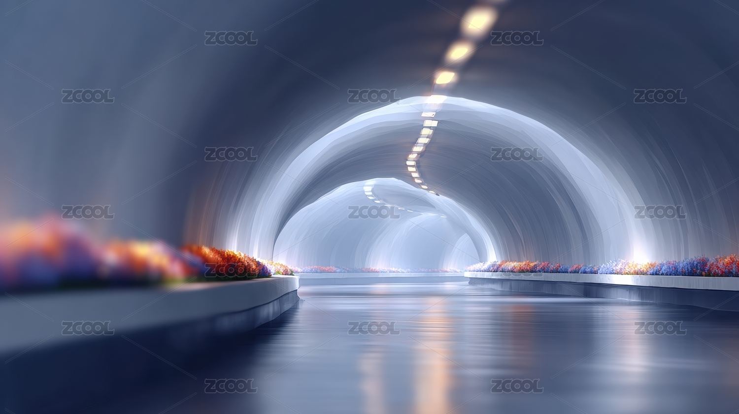 科幻,隧道,光影,未来感,走廊,空间,现代,建筑,冷色调,反射