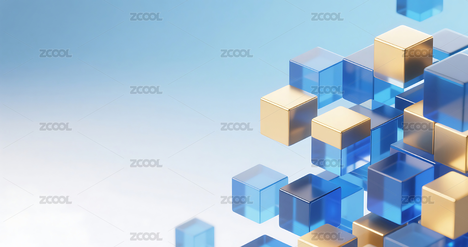 蓝金色商务科技3D玻璃几何方块群背景