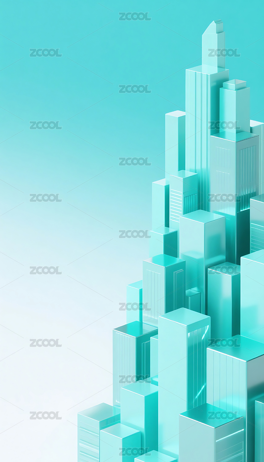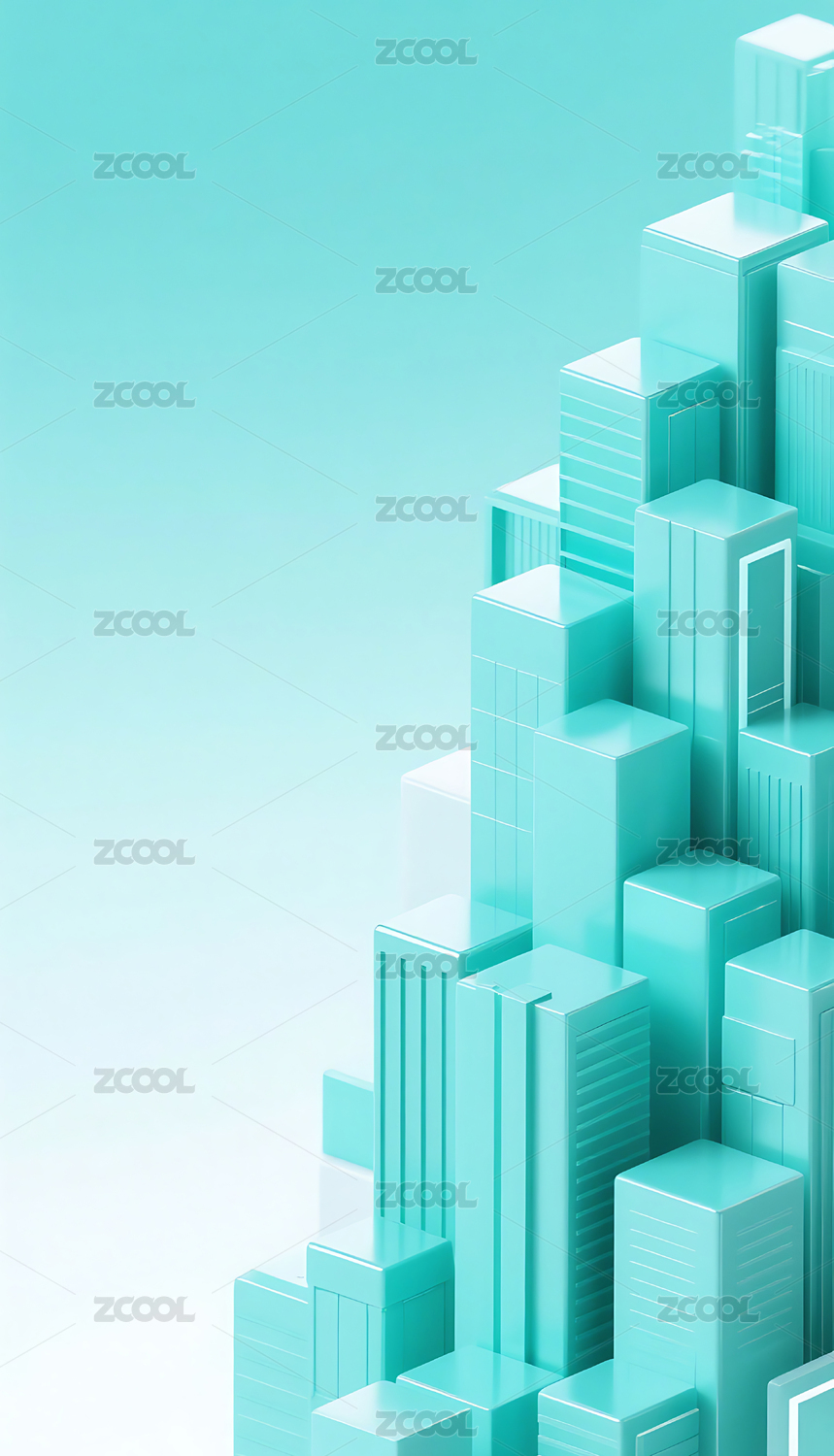 蓝绿色3D立体玻璃质感城市建筑背景