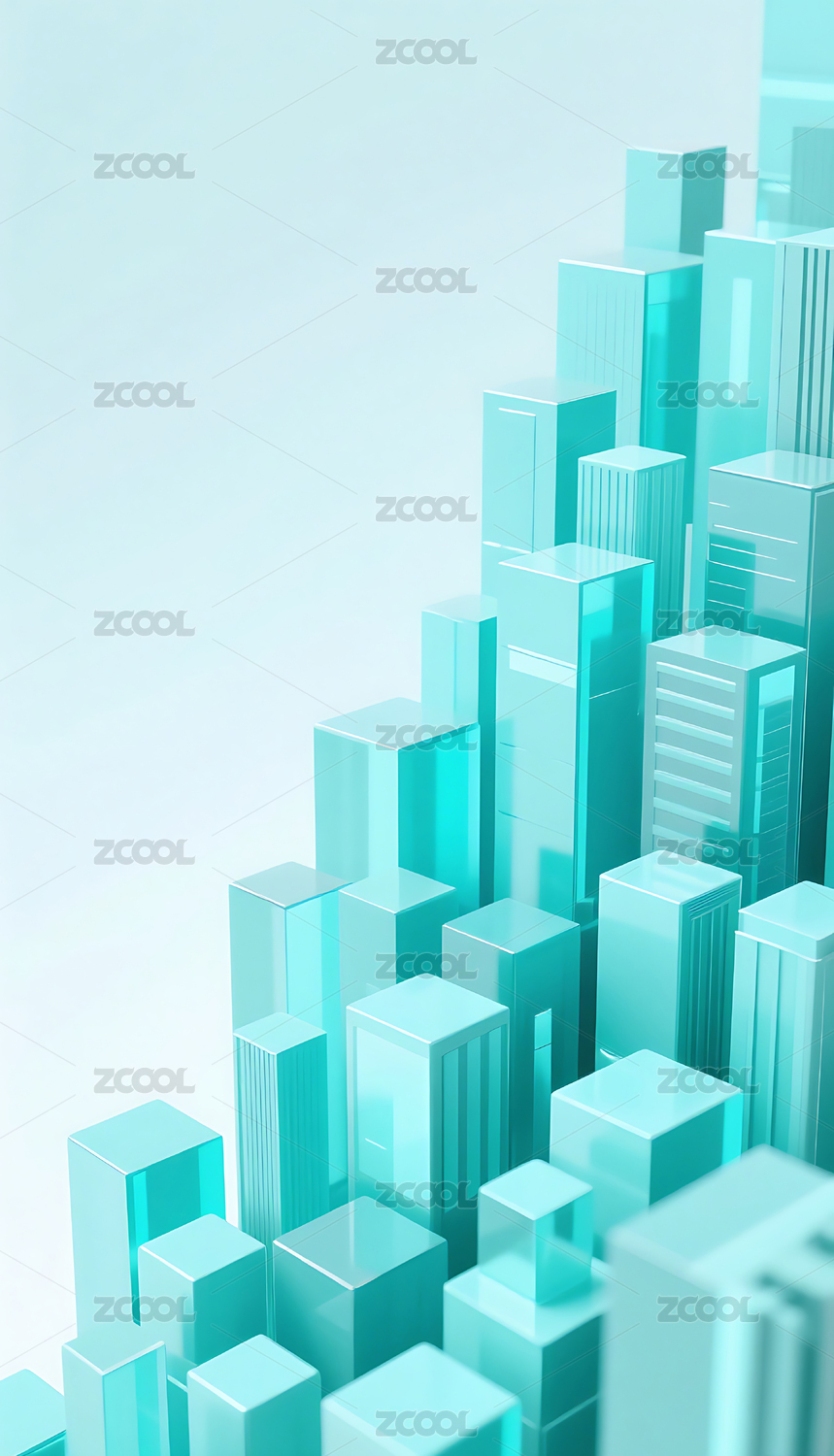 蓝绿色商务科技3D玻璃几何方块群背景