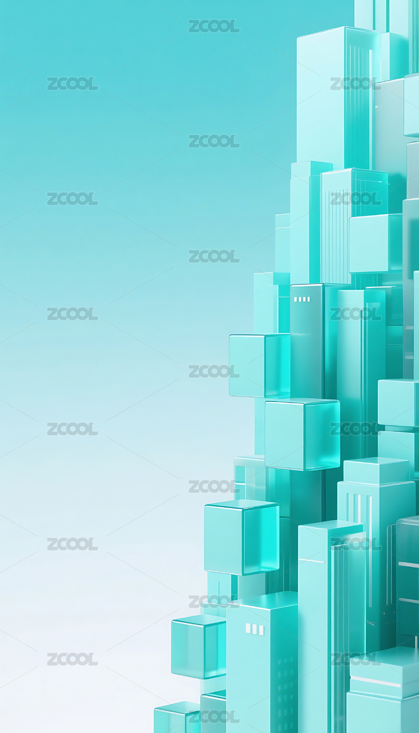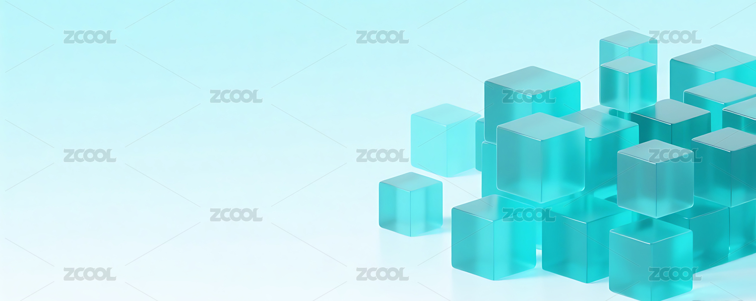 蓝绿色立体玻璃半透明方块背景