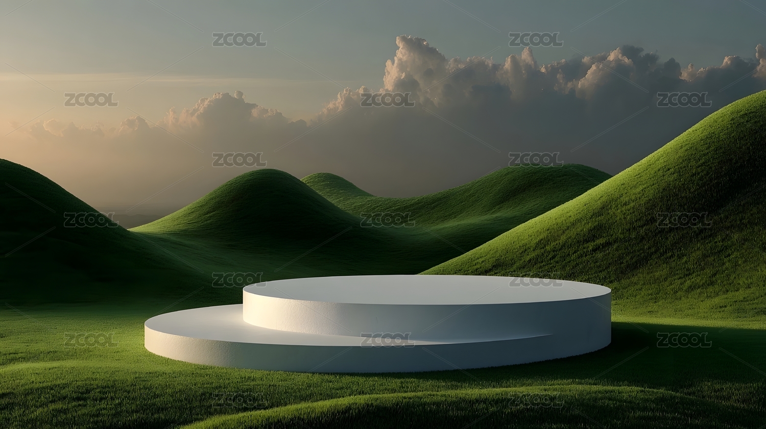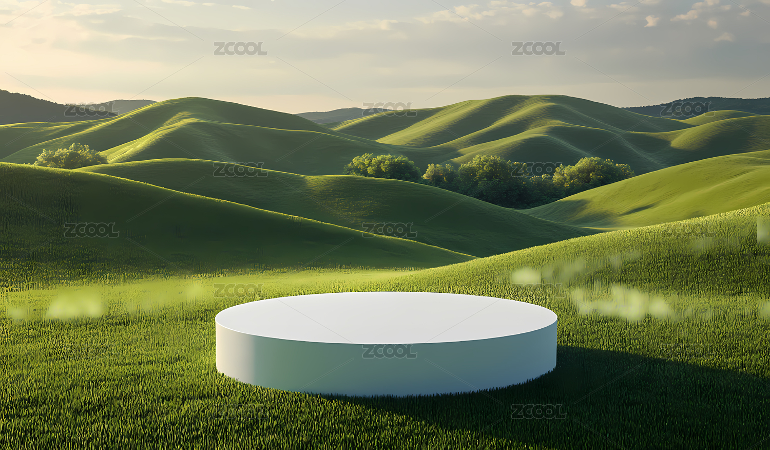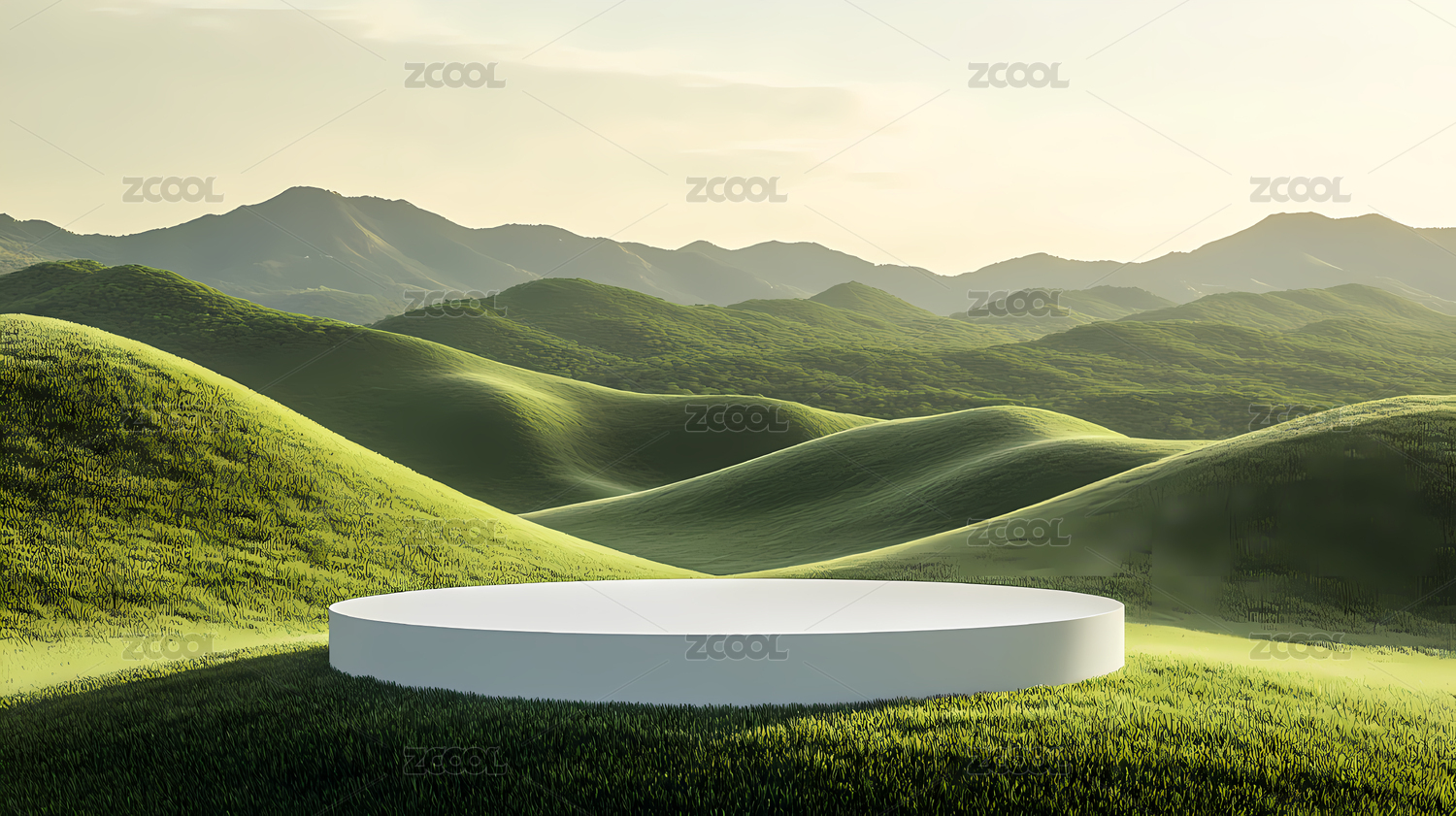 绿色山丘与白色圆台