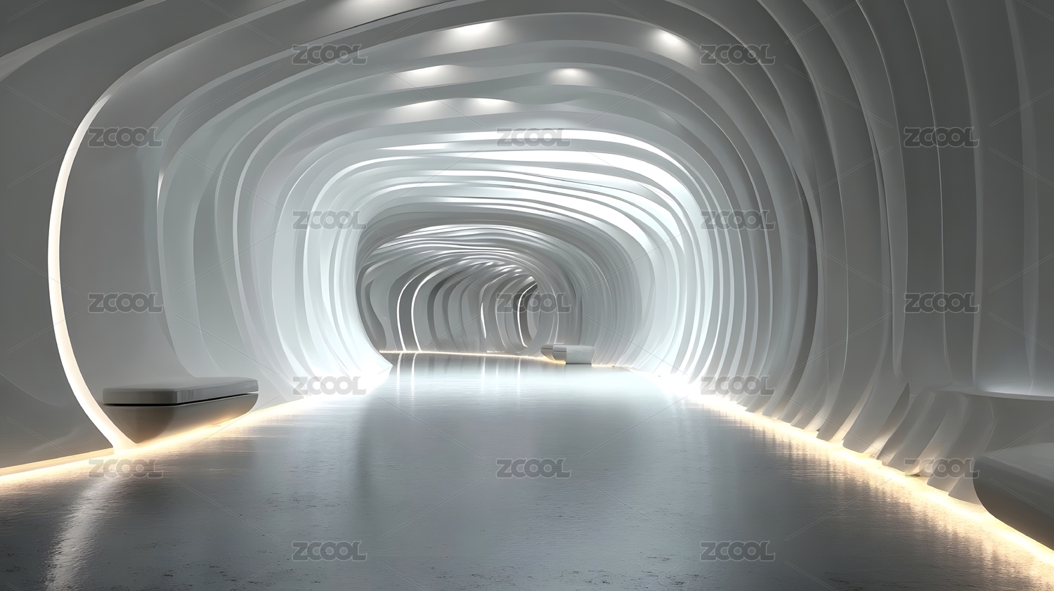 未来感白色隧道空间