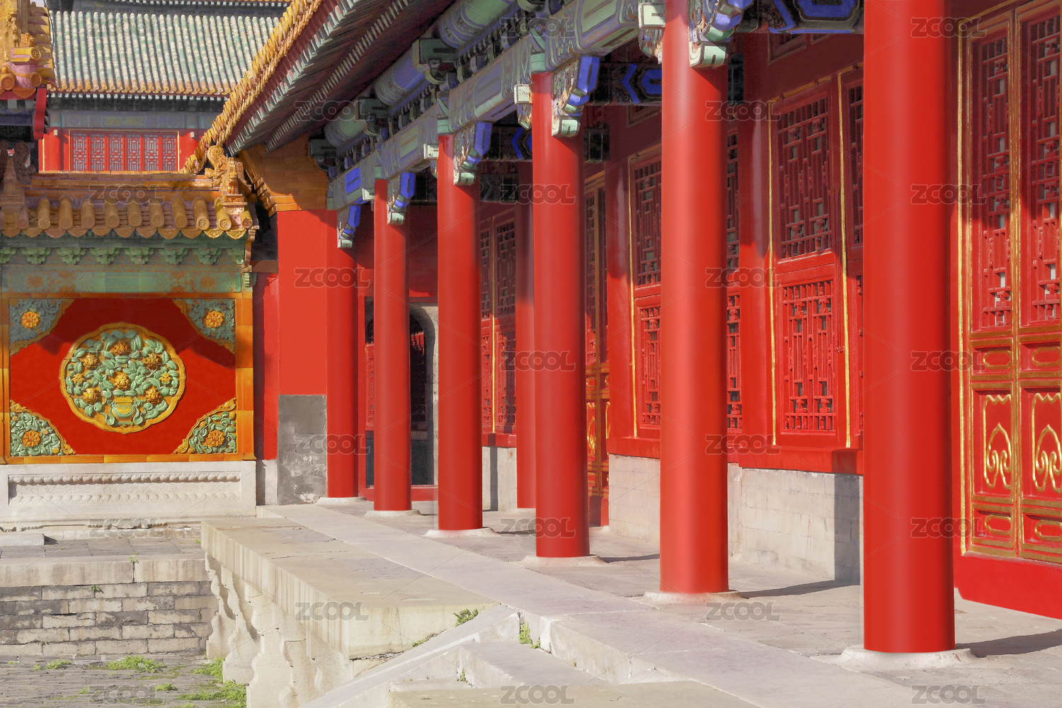 吉林市炮台山上古建筑庙宇青砖墙及屋檐瓦当