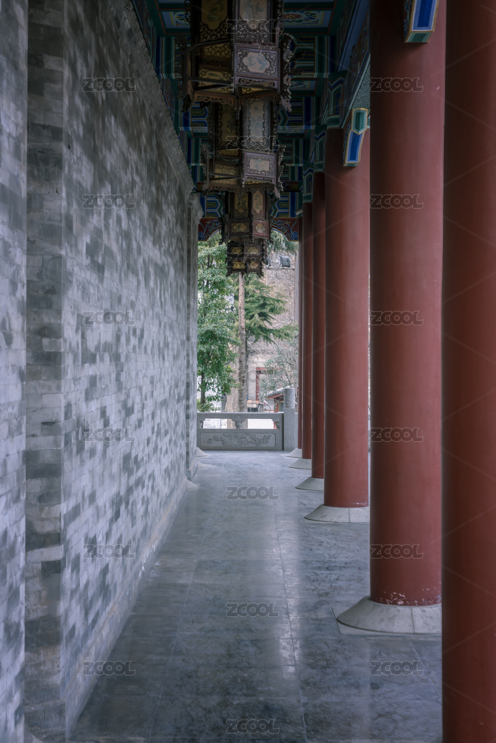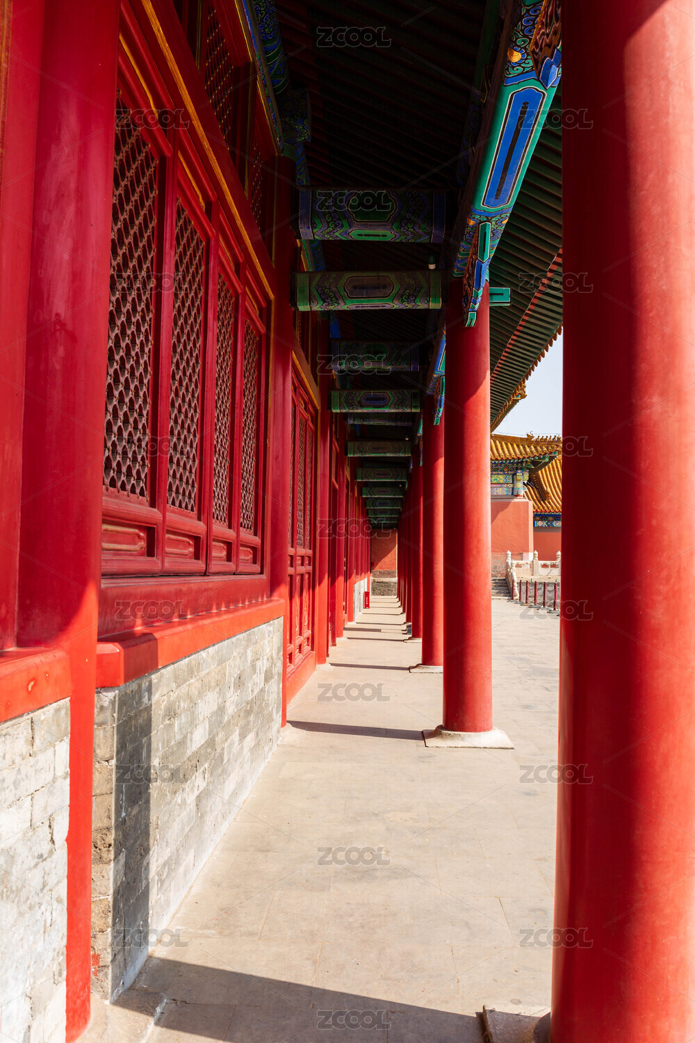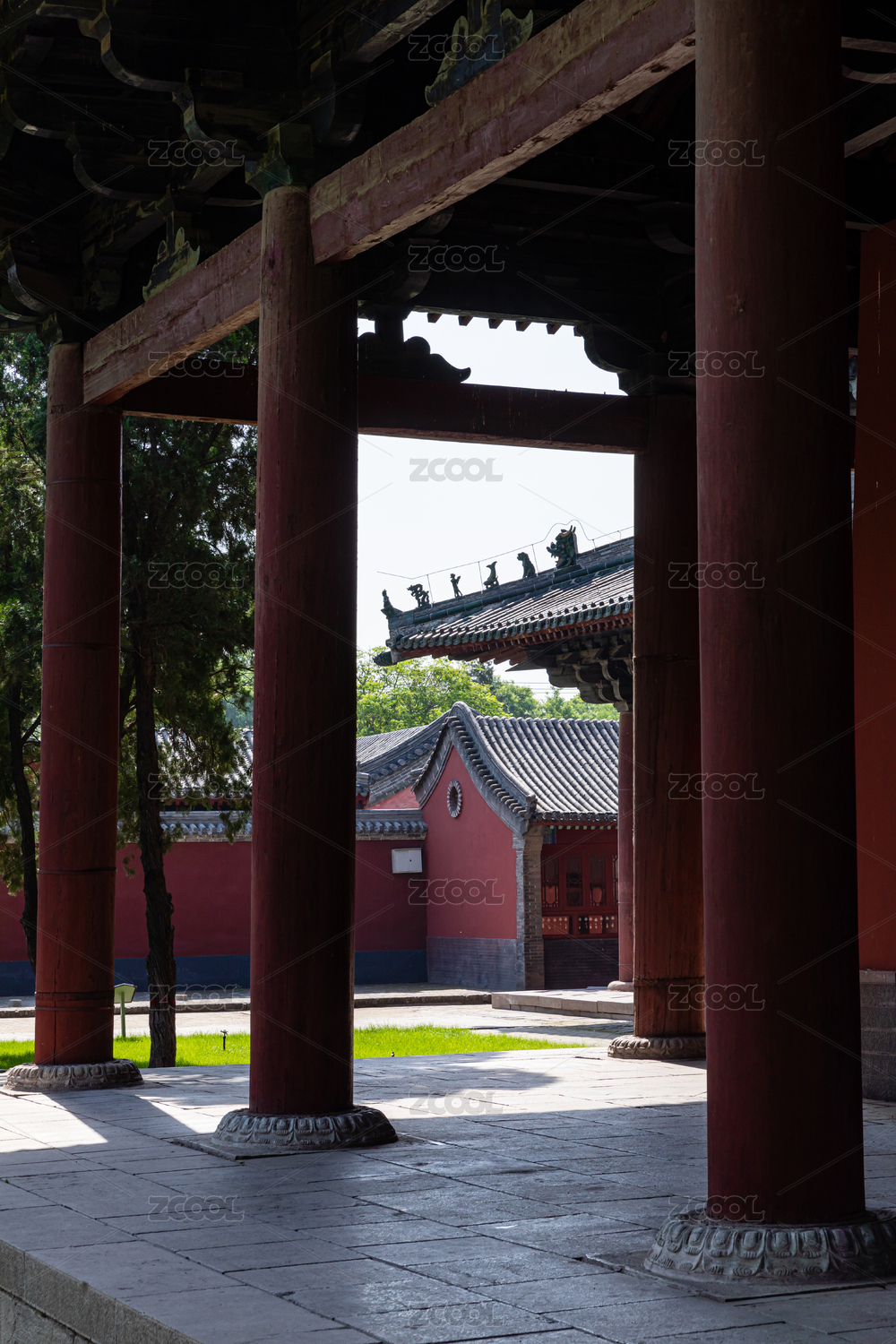 太庙公园的古建筑柱子与走廊过道