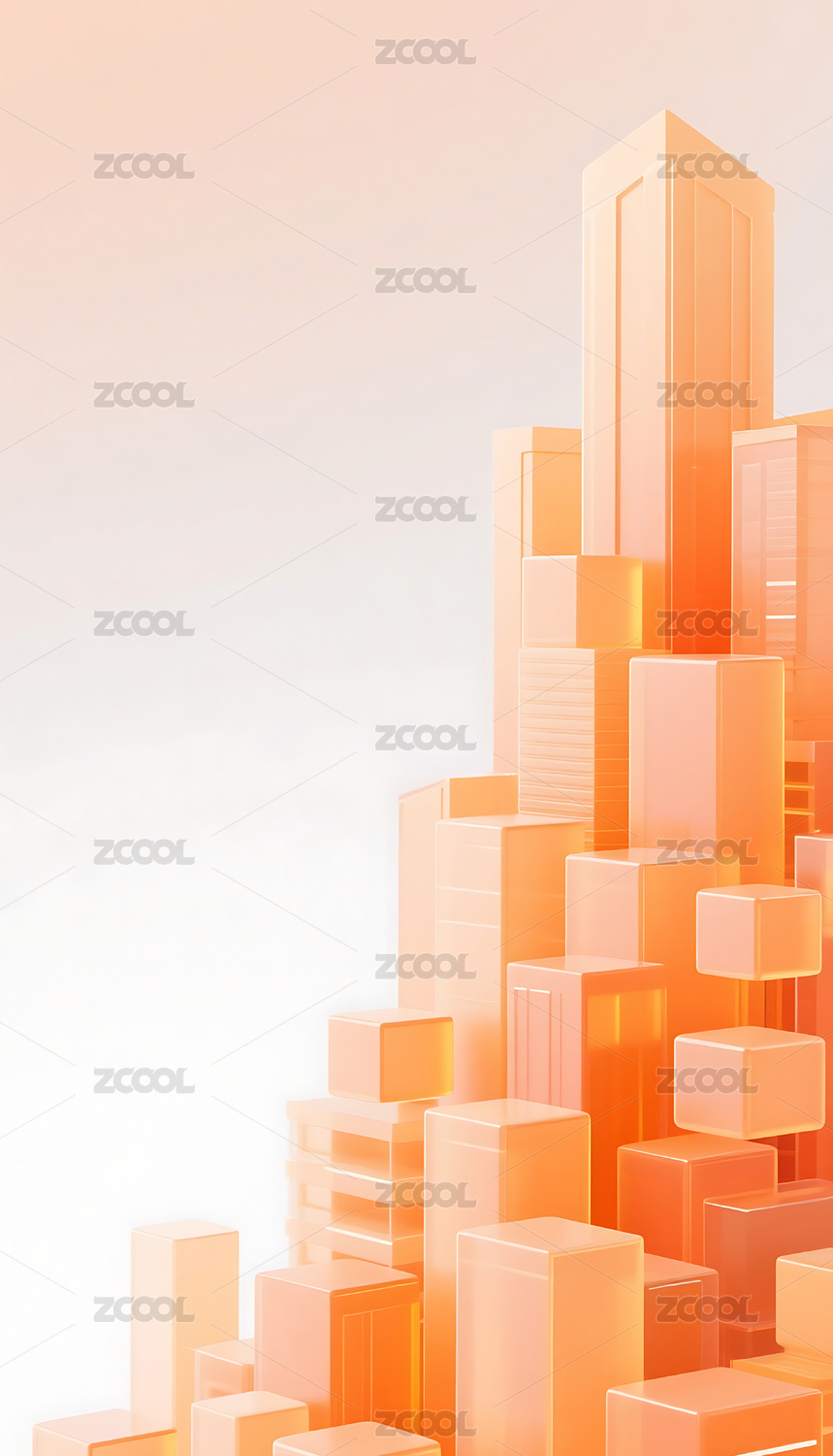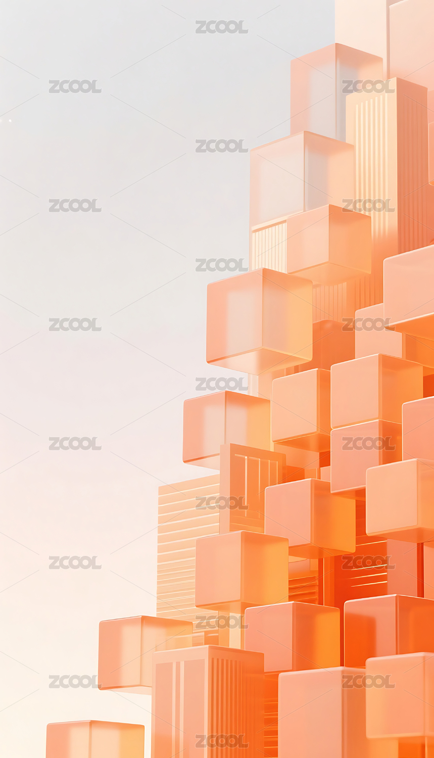 橙色透明方块几何城市建筑背景