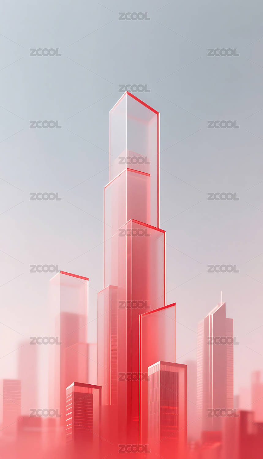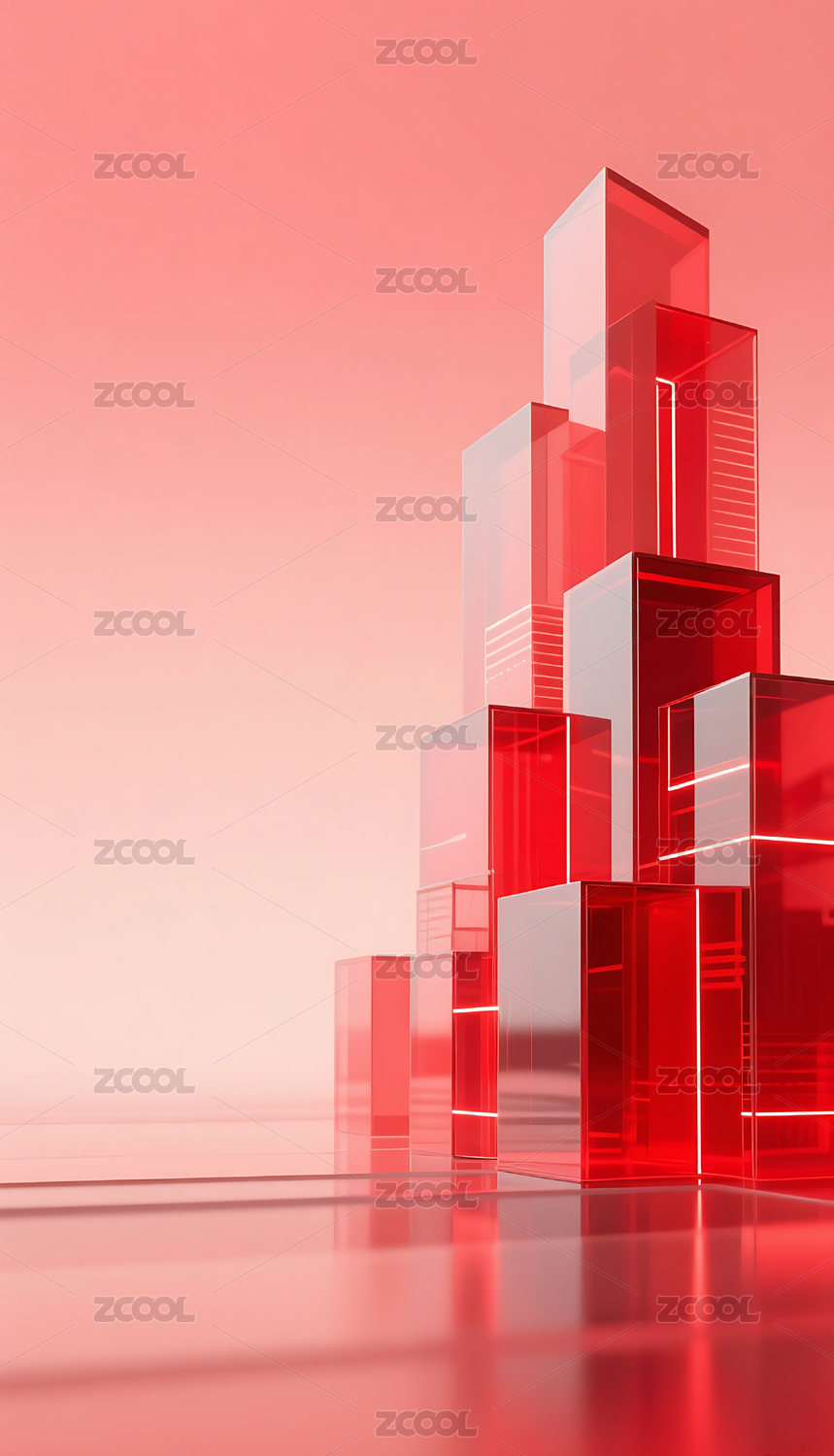 红色科技几何方块玻璃质感城市建筑