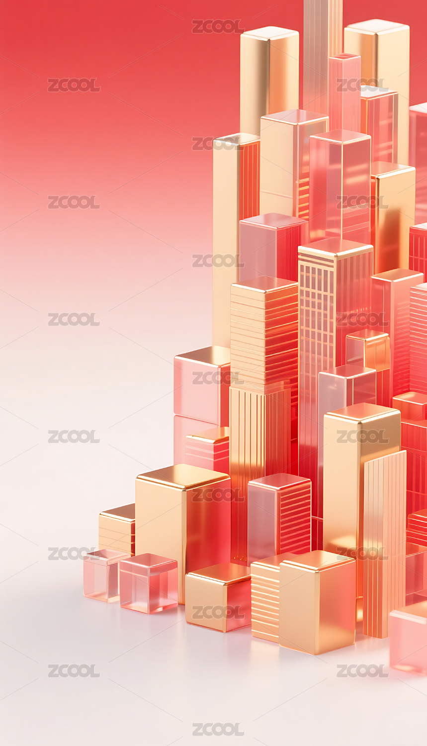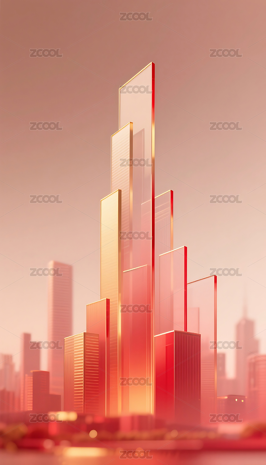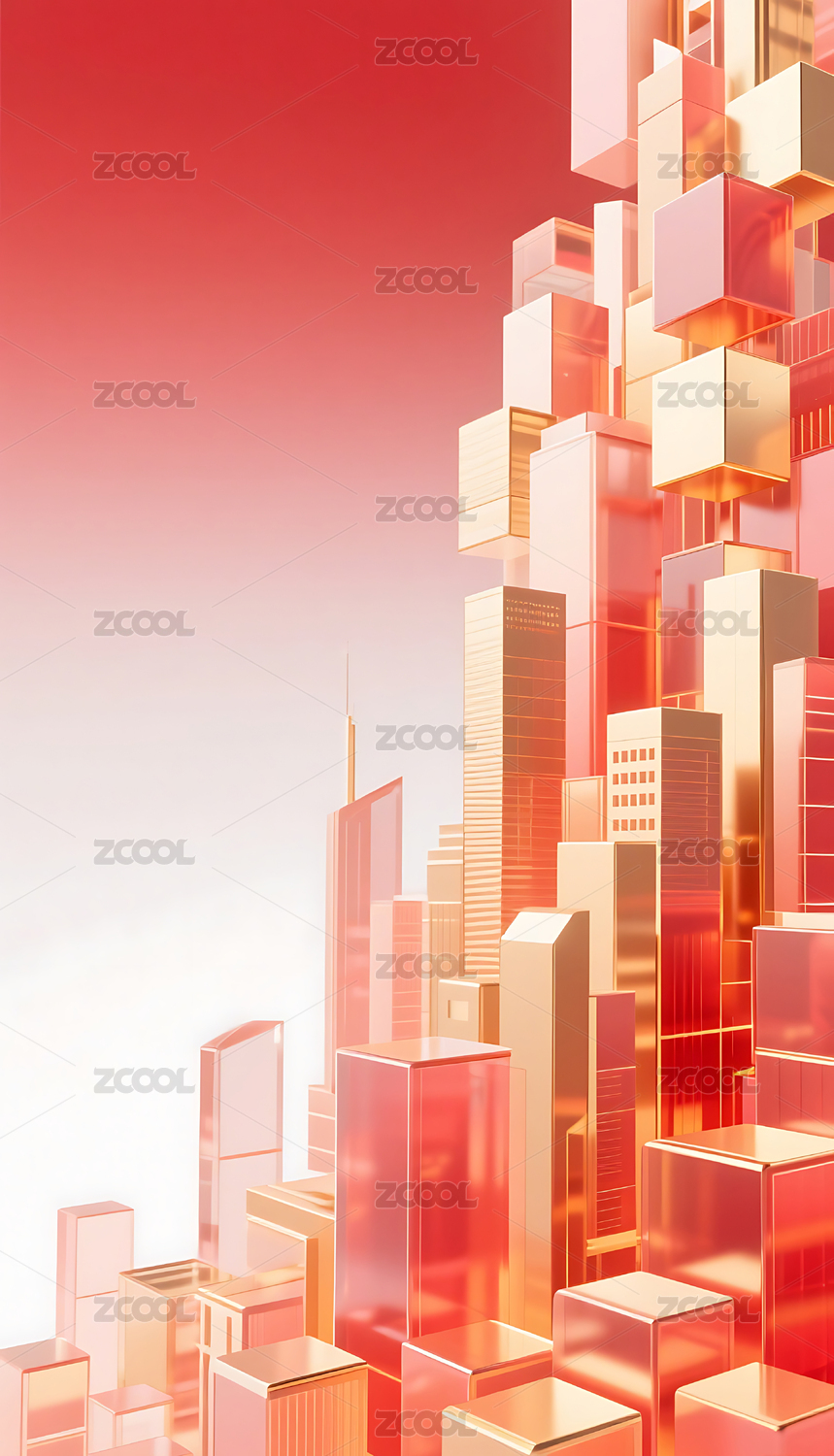 红金色3D立体玻璃质感城市建筑背景