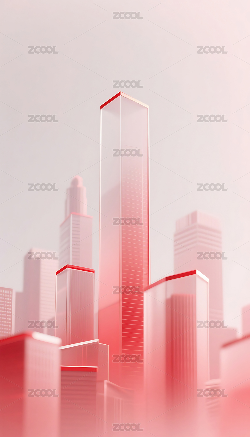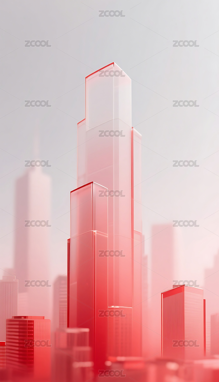 红色科技几何方块玻璃质感城市建筑
