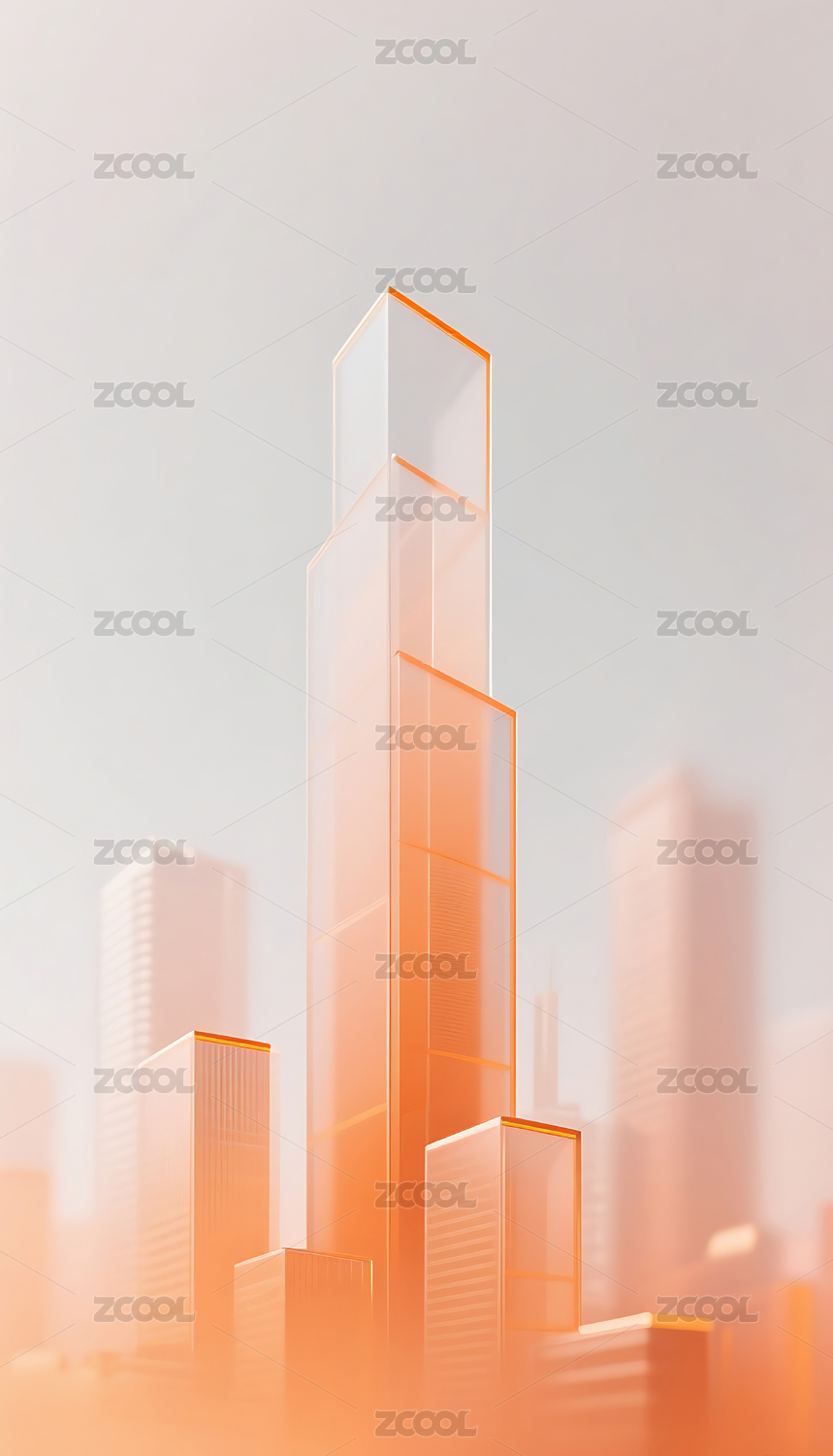 橙色3D立体玻璃质感城市建筑背景