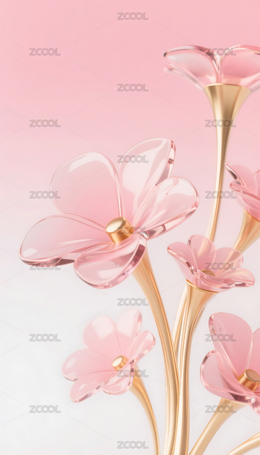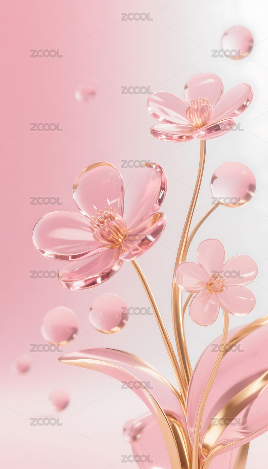 粉色3D立体玻璃质感花朵背景