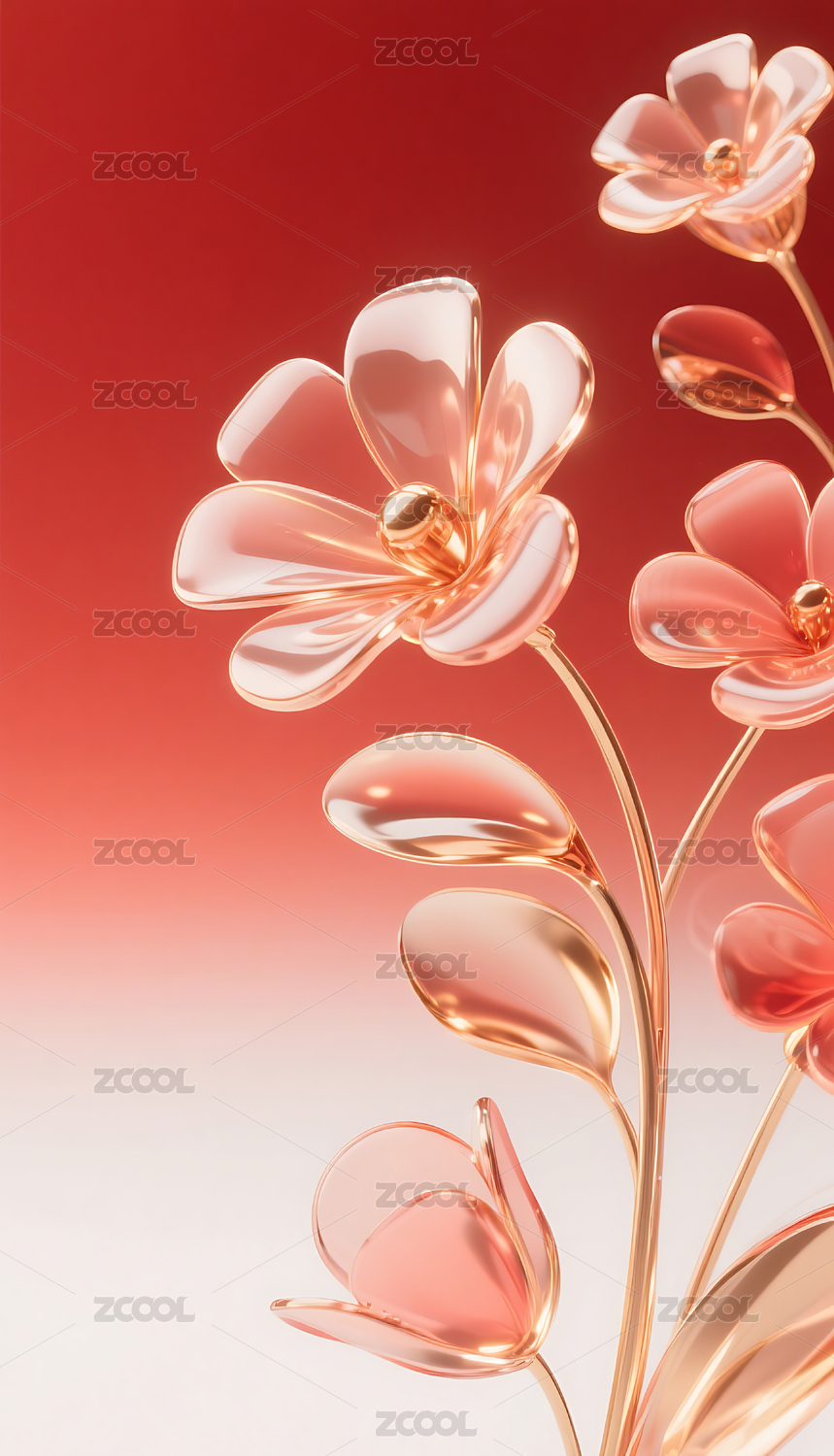 红色3D立体玻璃质感花朵背景