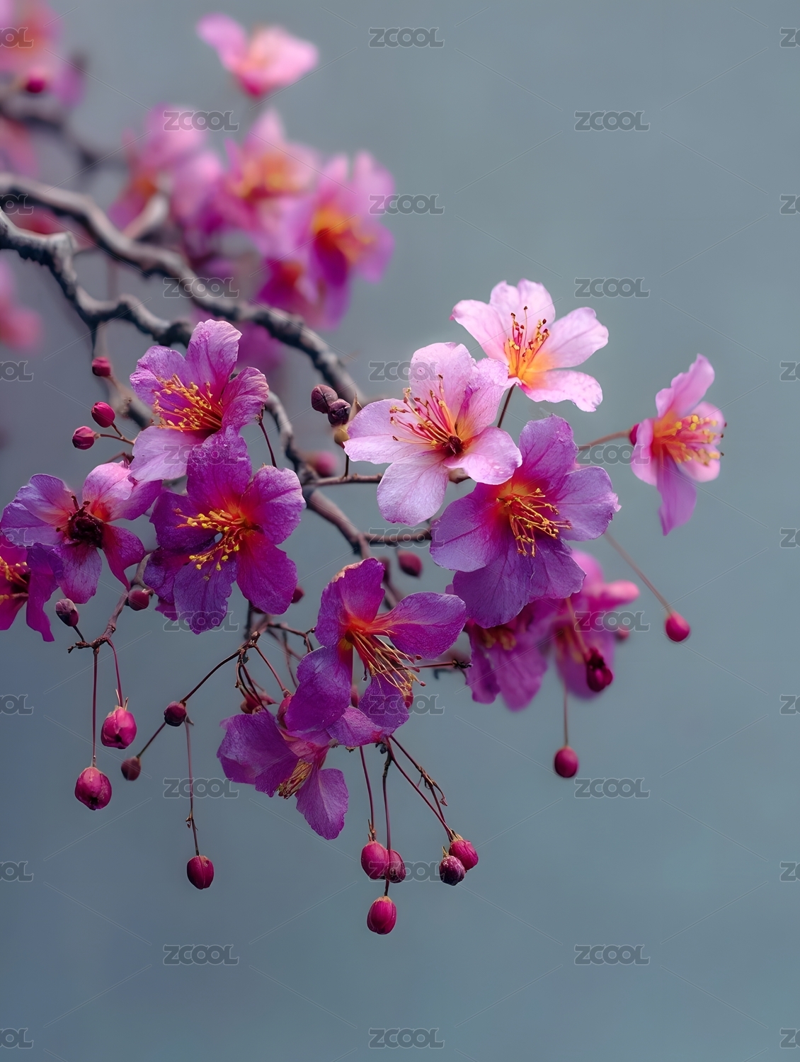 粉紫色樱花绽放特写