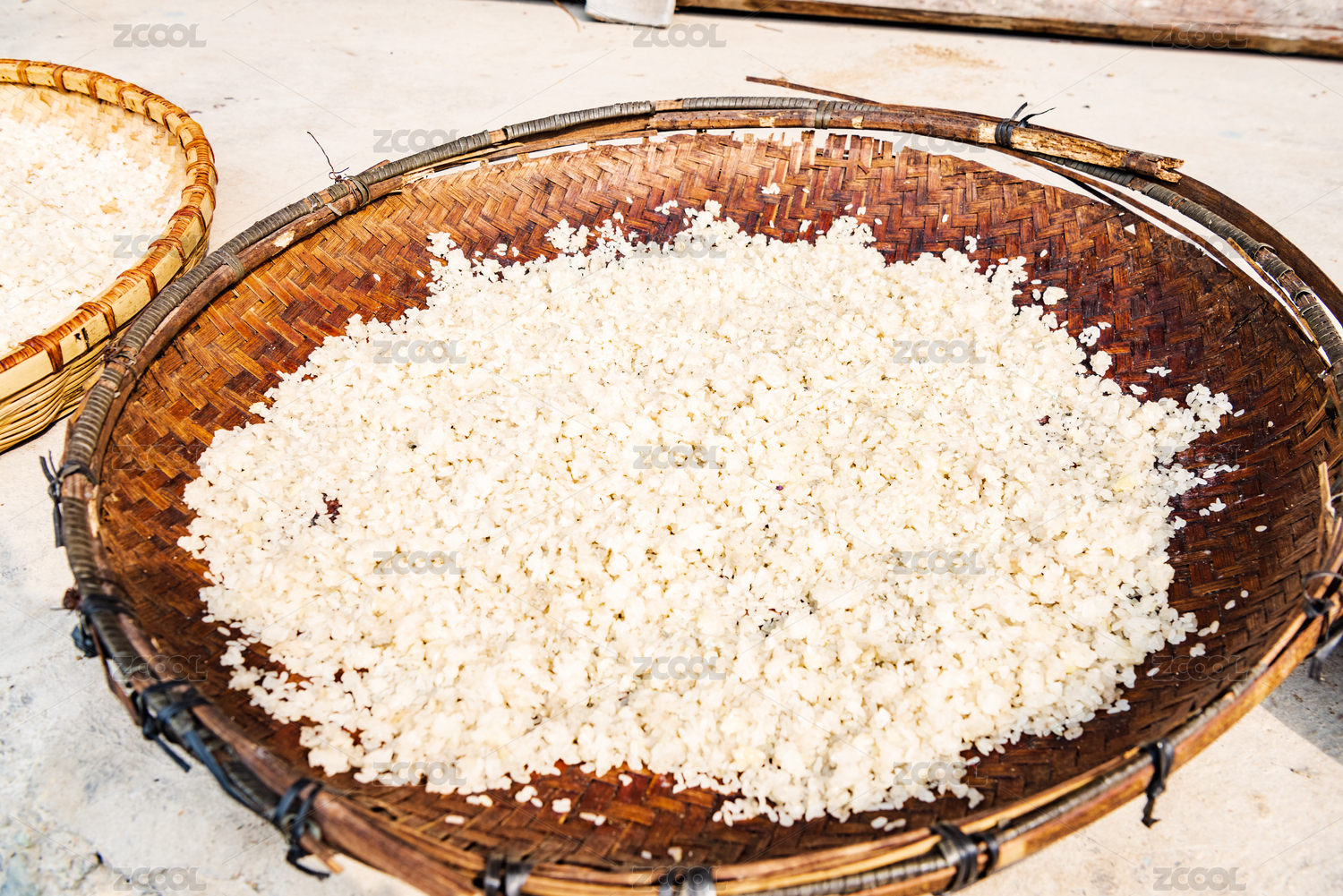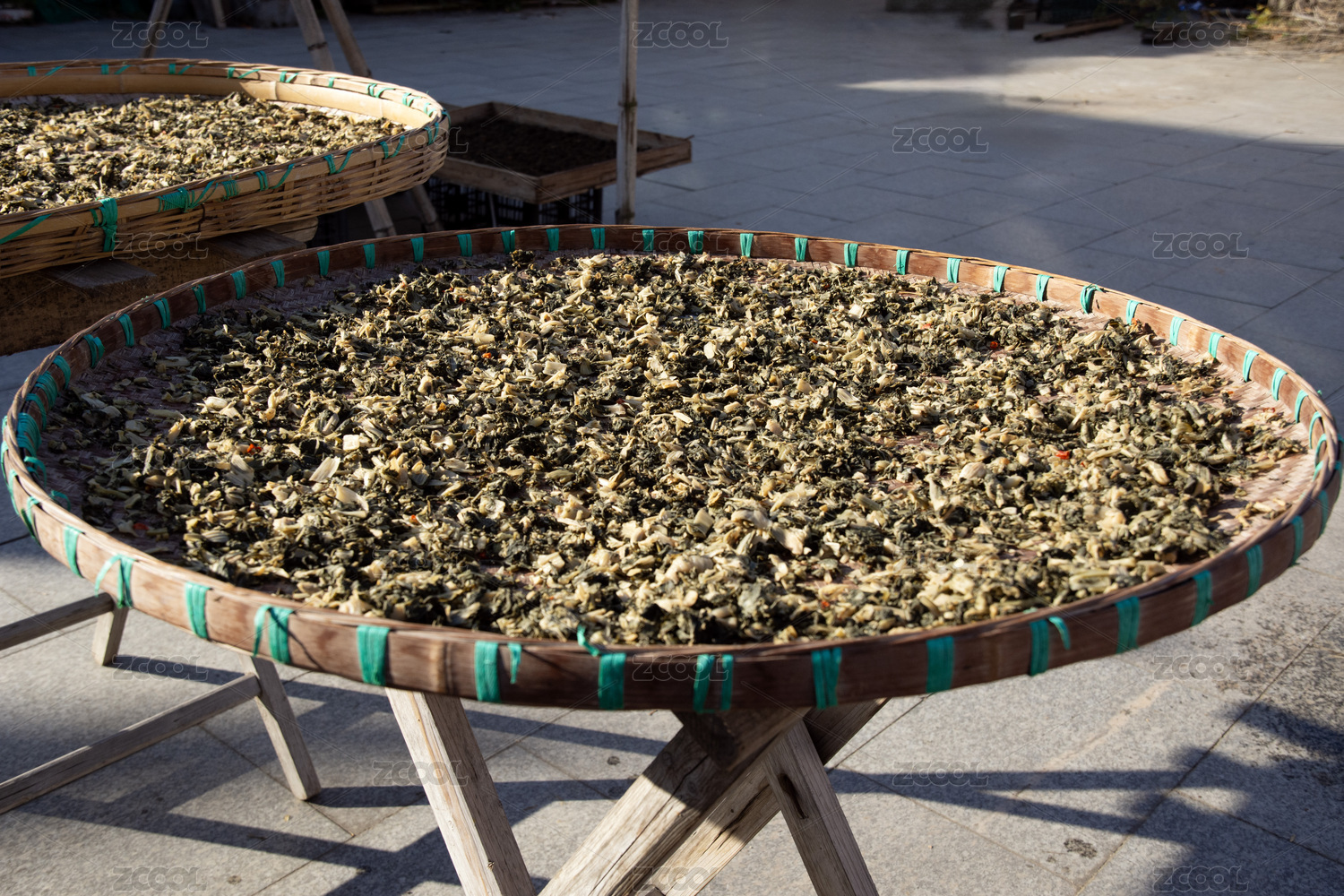 传统制茶手法在竹器中萎凋的春茶鲜叶