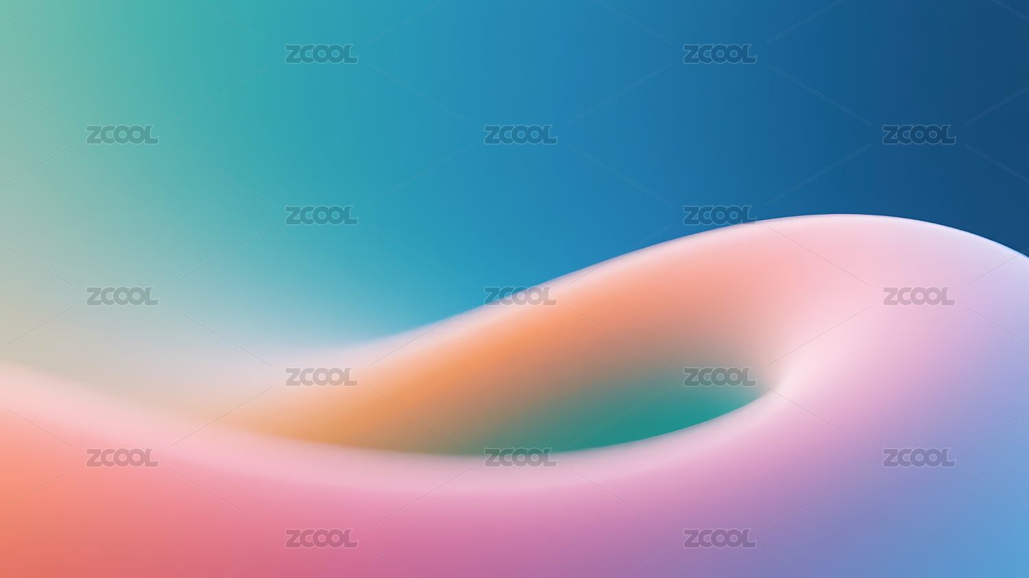 粉橙绿渐变波浪蓝绿底