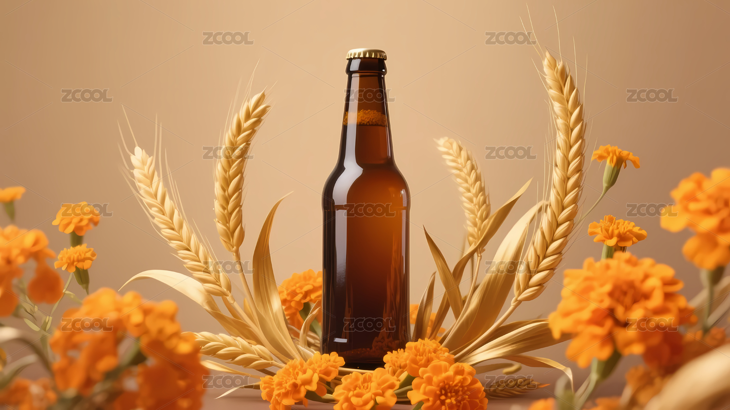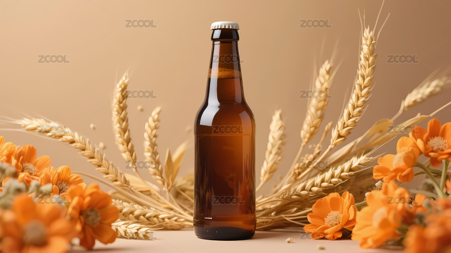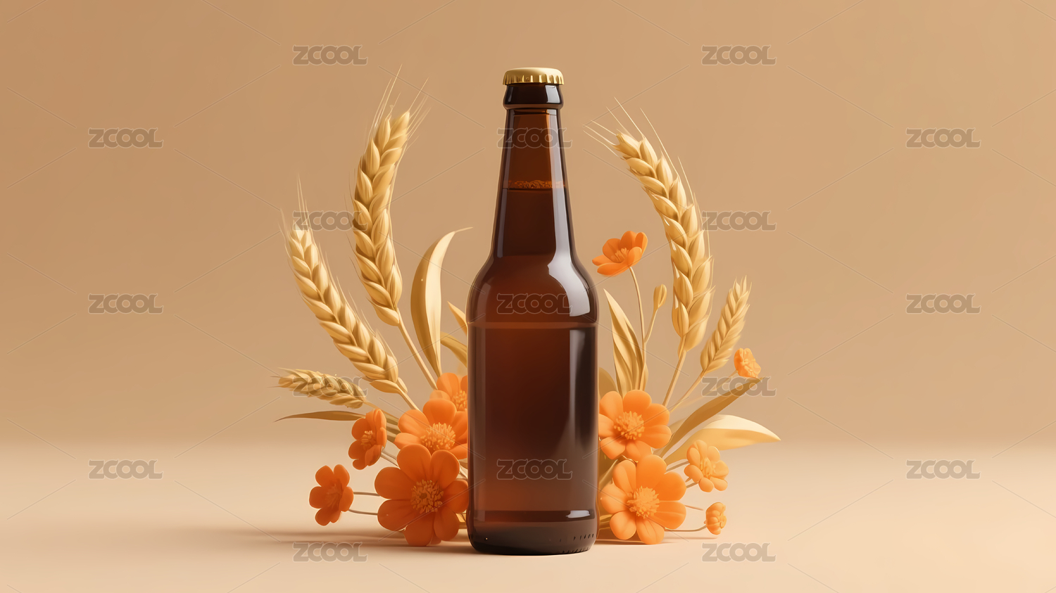 主视觉,商业,壁纸,场景,白色,背景,行业,啤酒瓶,清新,饮品
