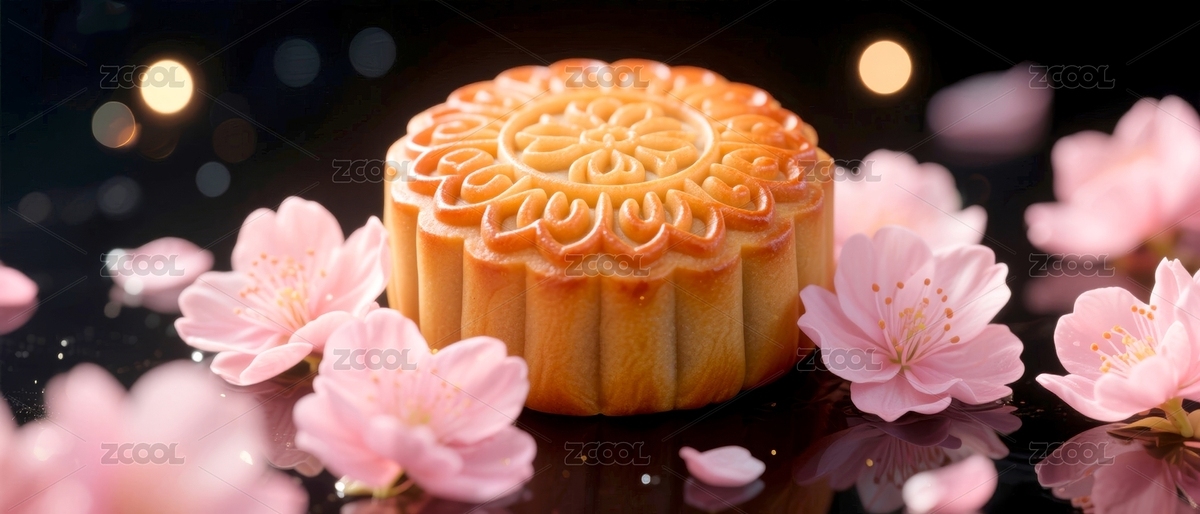 月饼与樱花背景