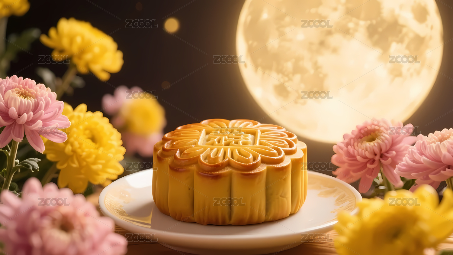 中秋金黄月饼花卉