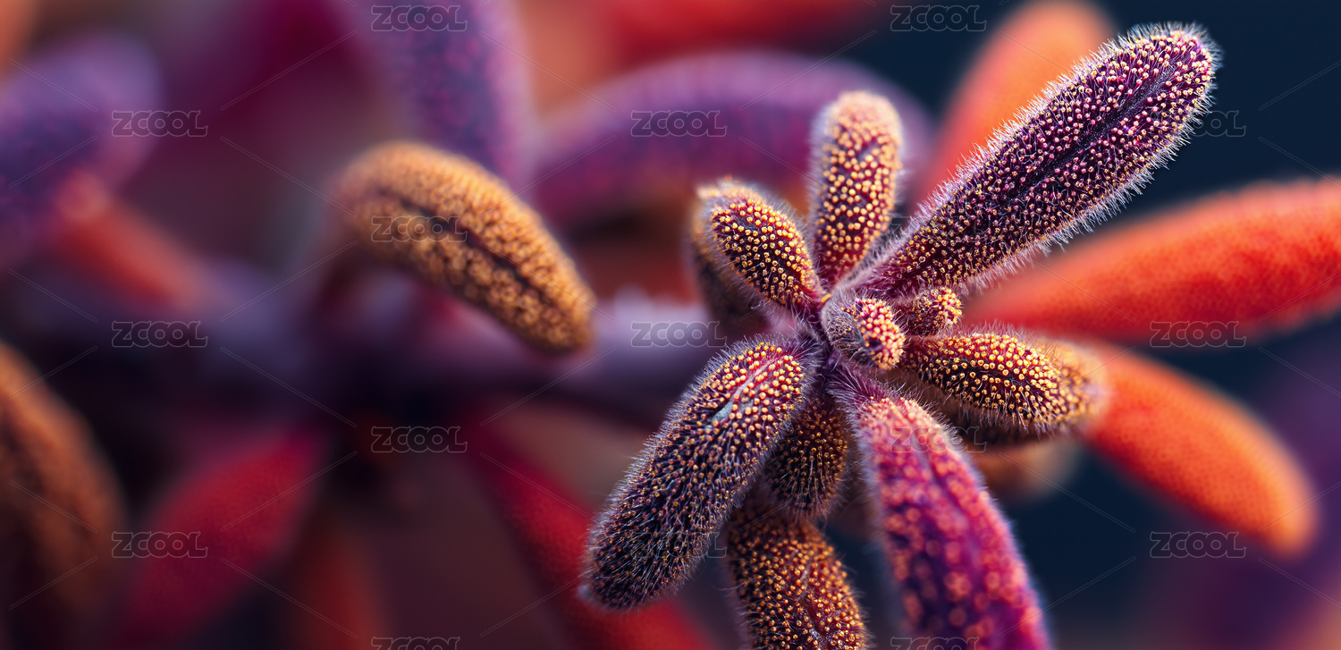 特写紫橙渐变多肉植物茎叶展现细腻绒毛质感
