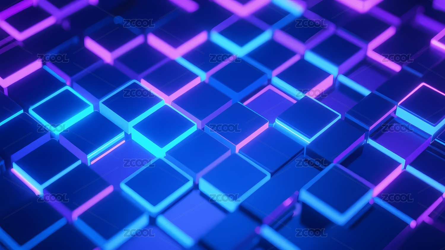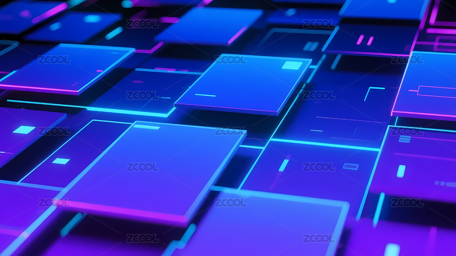 蓝色,发光,科技,未来,深色,背景,紫色,方块,网格,轮廓