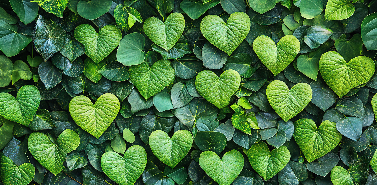 绿叶心形图案植物的自然特写