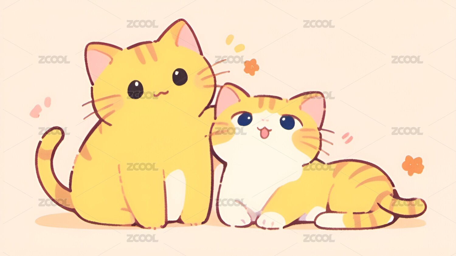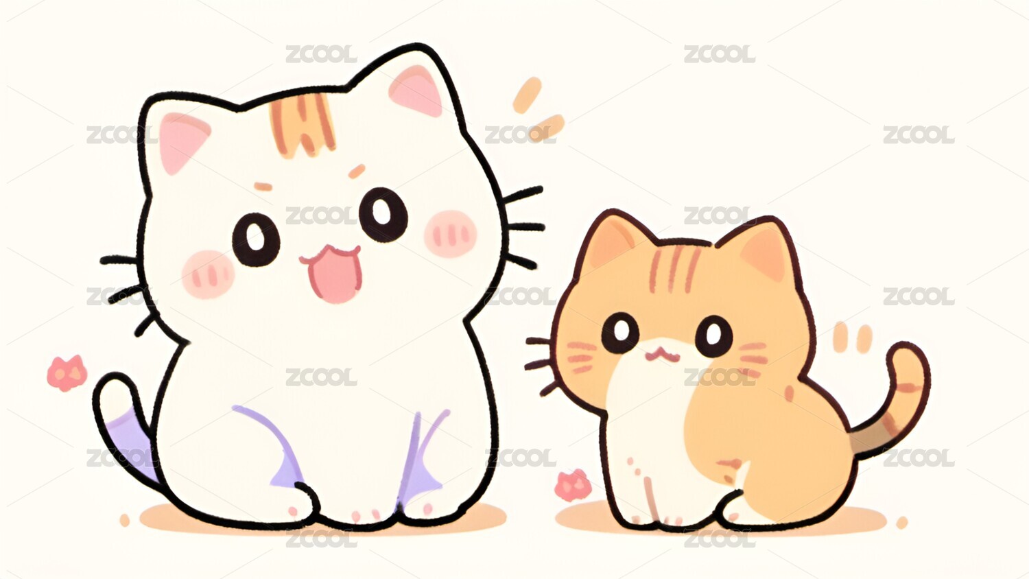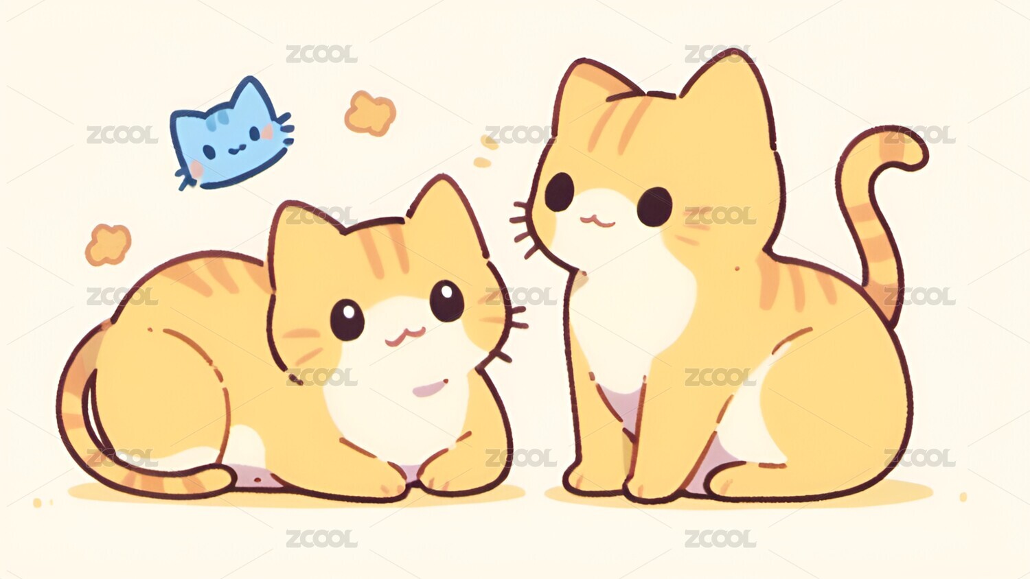 卡通,小猫,猫,可爱,动漫,治愈,动物,插画,Q版,宠物