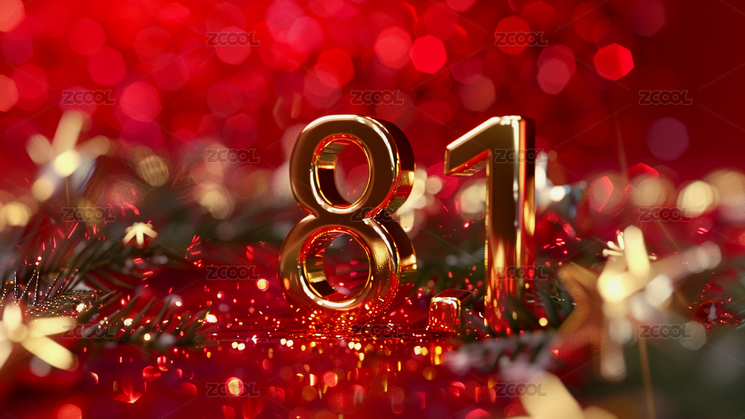 主视觉,商业,壁纸,81,数字,金属感,节日,展示,金色,红色