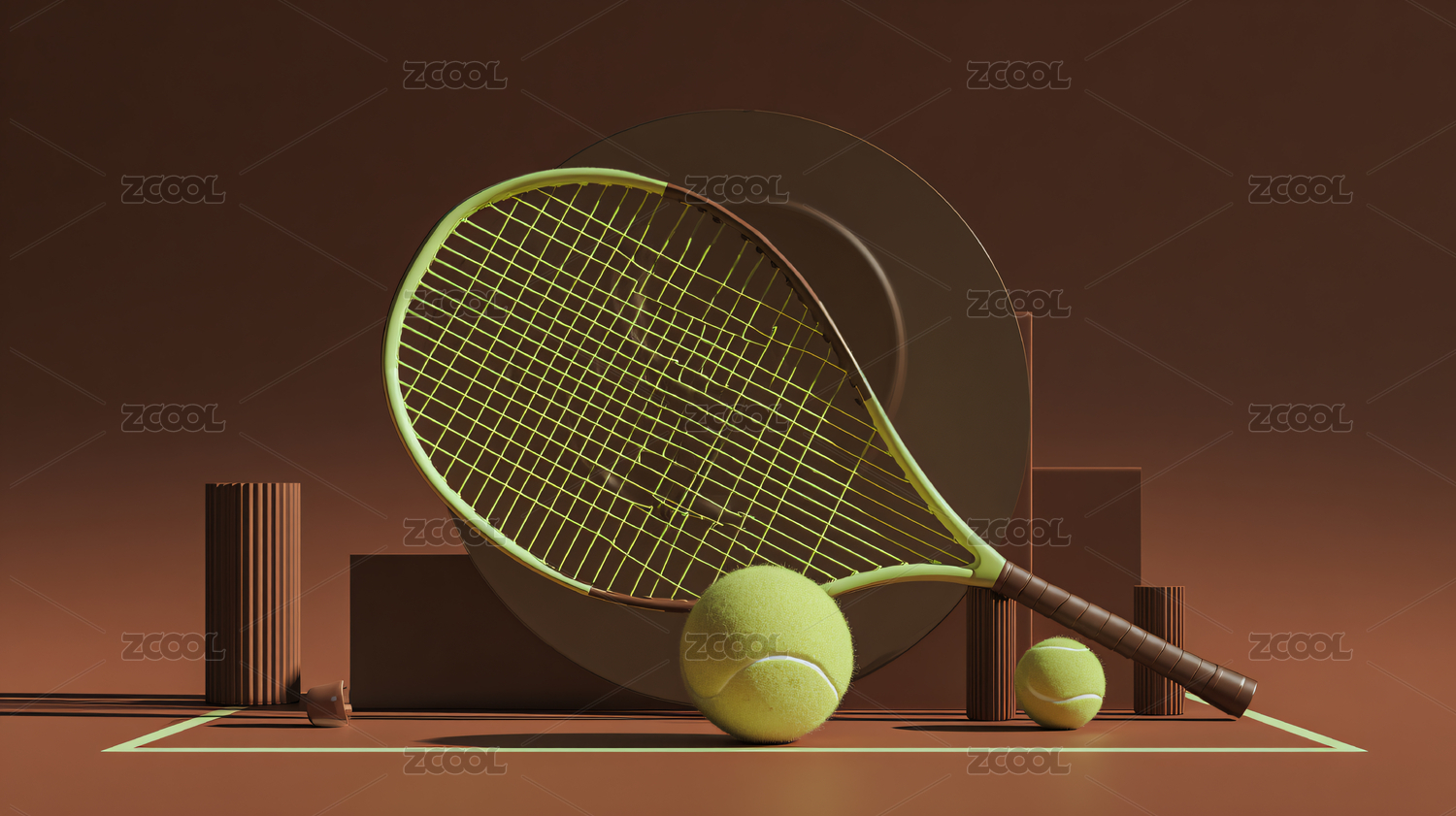 3D渲染网球运动活动夏天健身户外锻炼插画