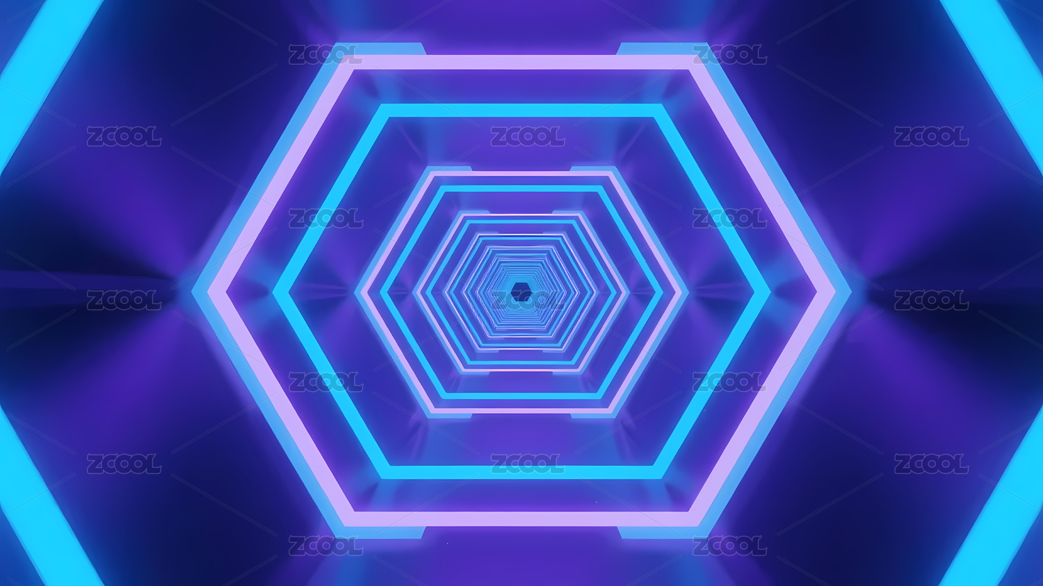 深蓝,渐变,抽象,光影,科技,未来,隧道,六边形,亮紫,结构
