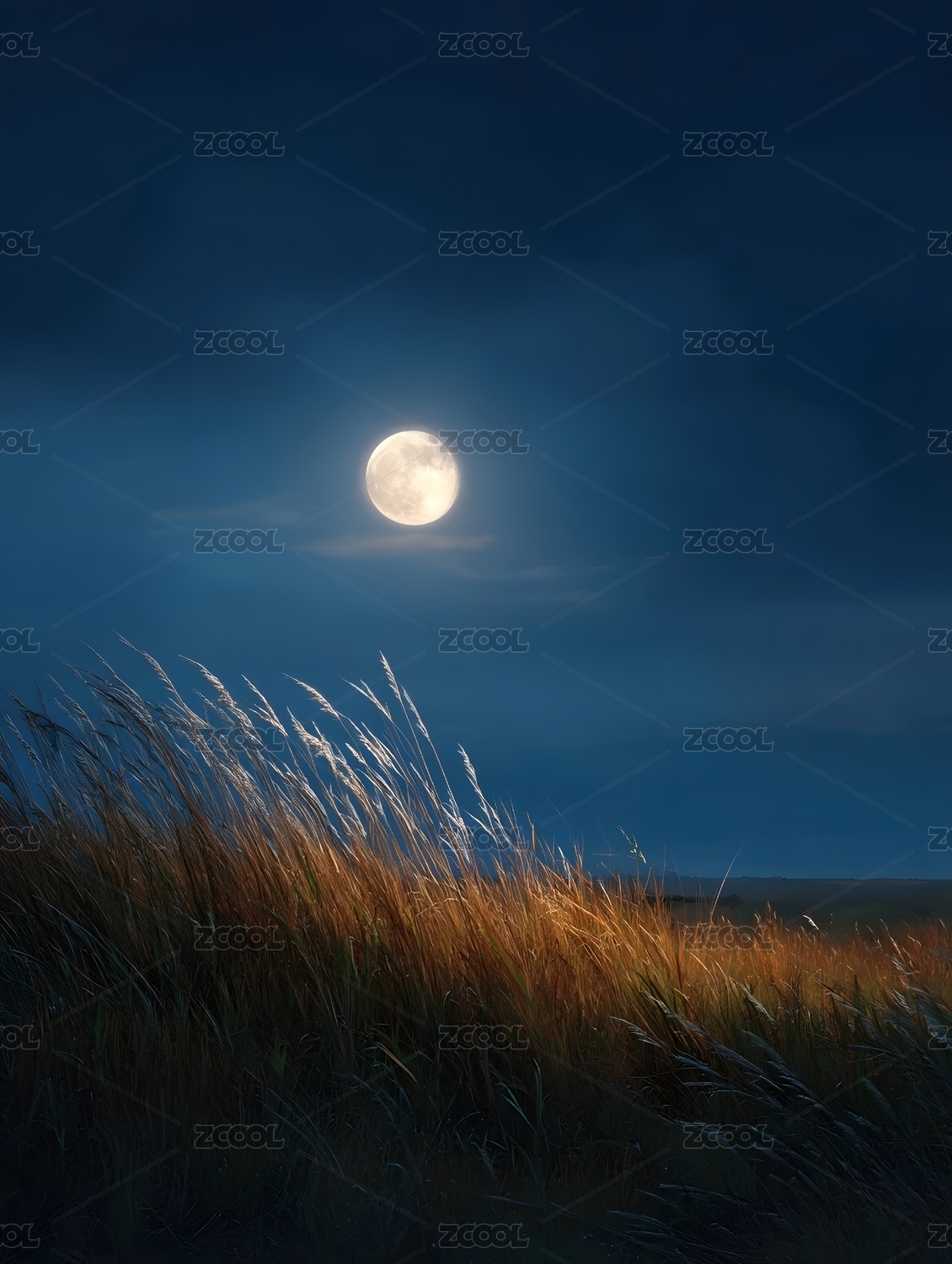 月夜下的金色草丛