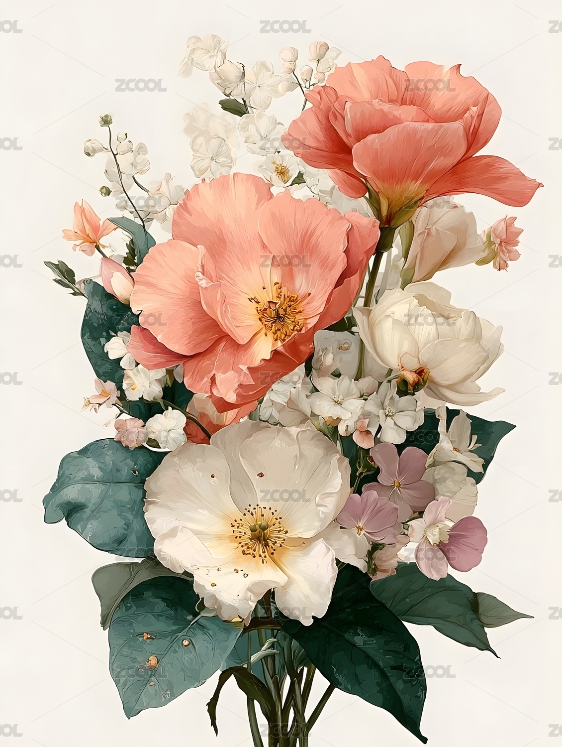 叶子,花朵,花瓣,花卉,花心,花蕾,绿叶,花枝,绘画,插画