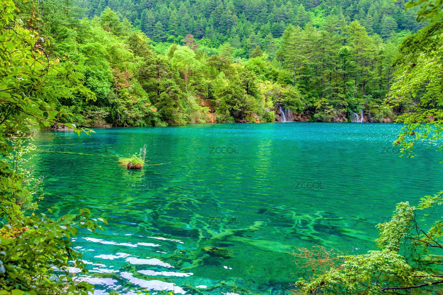 四川省阿坝九寨沟-蓝天下的湖光山色