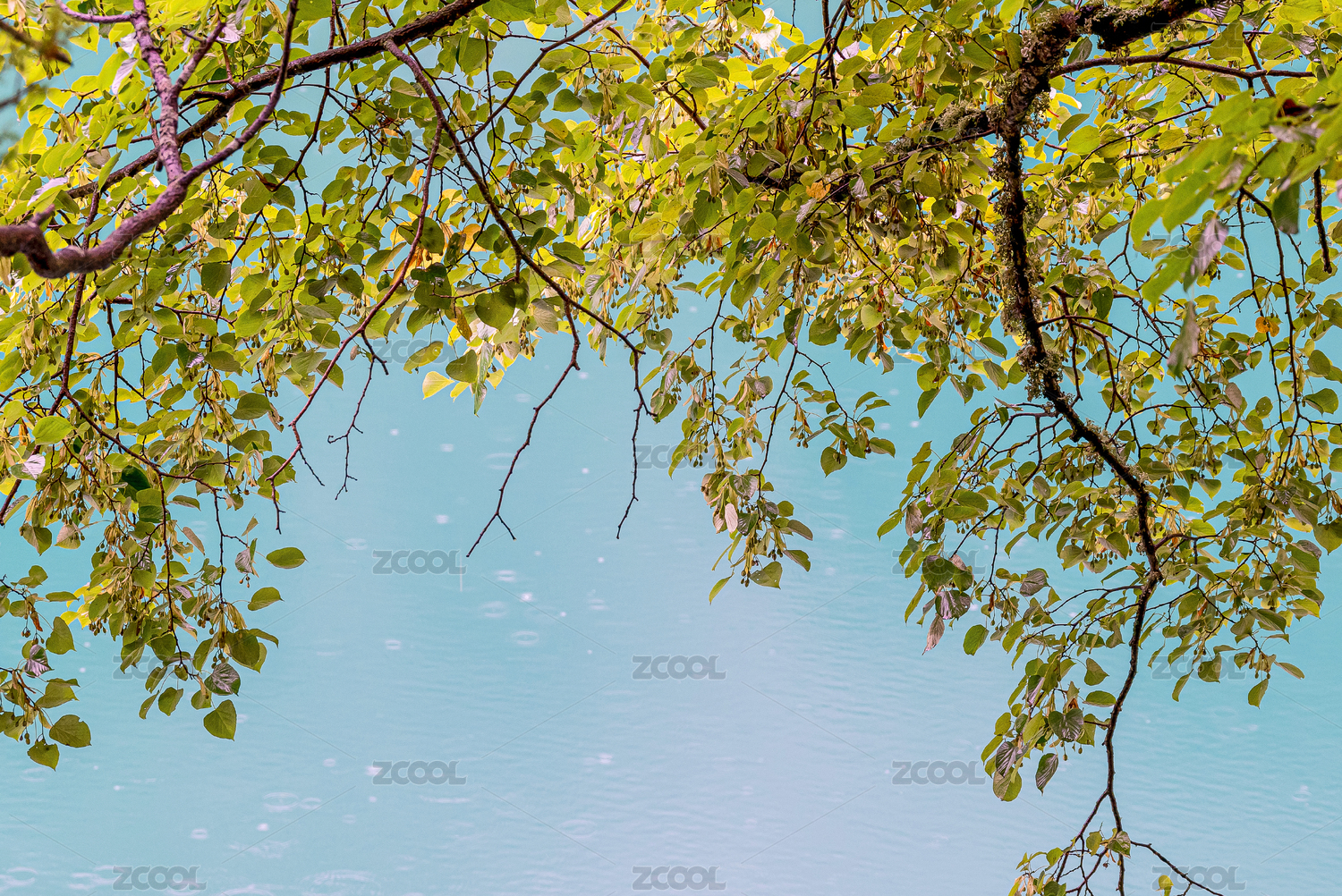 雨中池塘树枝