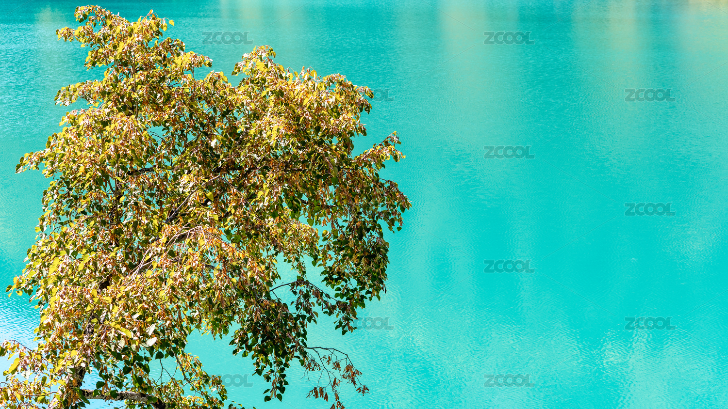 九寨沟湖边的黄叶