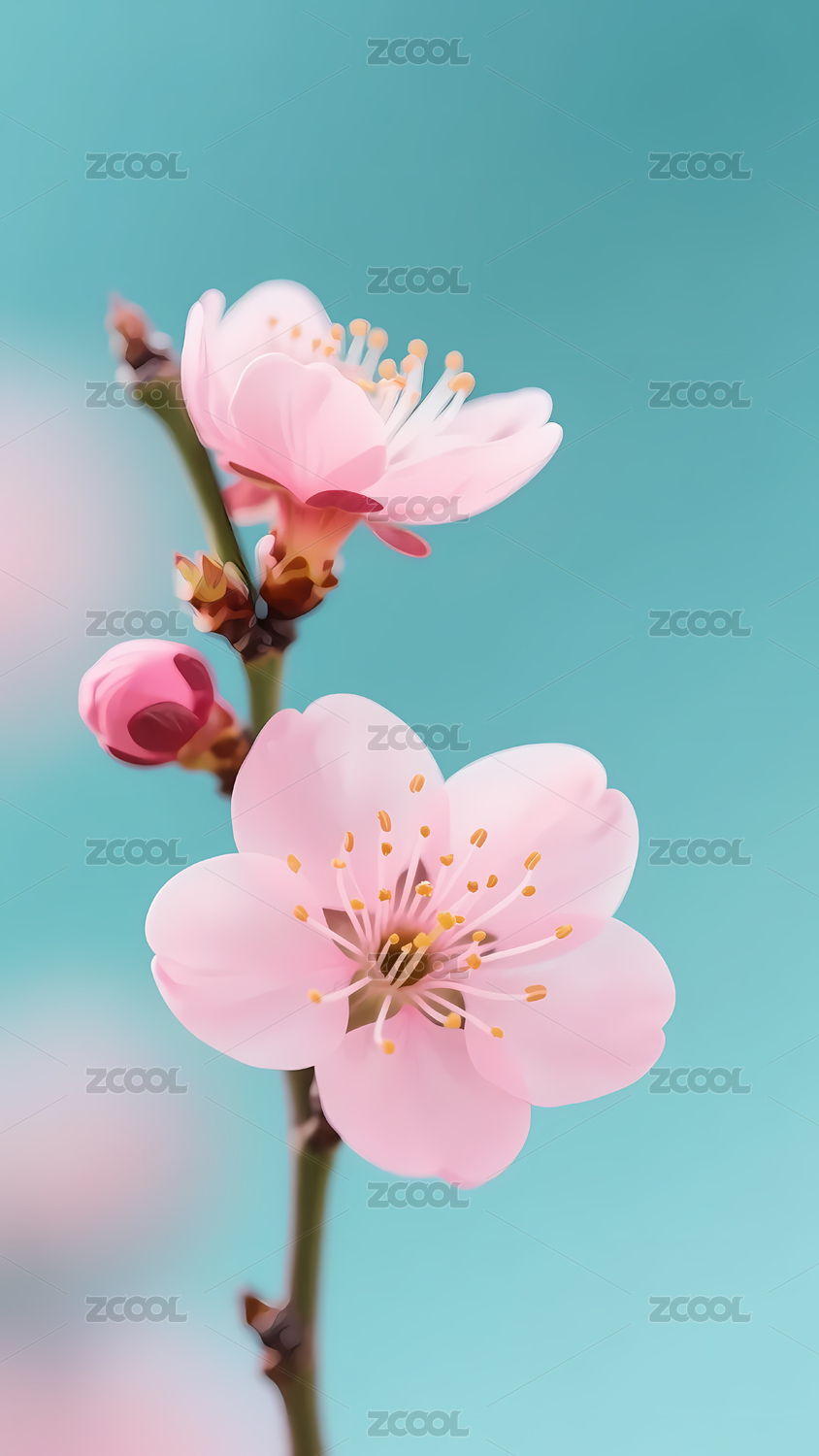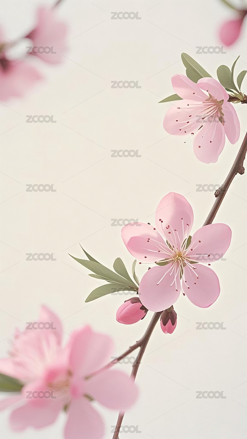 中国风,国风,国潮,桃花,桃树,桃枝,迎春花,工笔画,纯色,古典